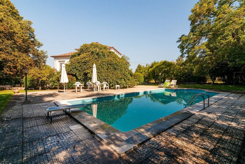 This superb manor house is located in Quinta do Casal de S. José, with 9,941m2 of land, right in the center of Vila da Lousã and about 25 km from Coimbra. This elegant 616m2 manor house, designed by the architect Moura Coutinho, with the collaboration of Jorge Colaço on the exterior tiles and Leopoldo Battistini on the interior tiles, was built at the beginning of the 20th century (1923) and is classified by the Ministry of Culture for its privacy and charm. It is in good condition and has three floors. On the first floor there is a one-bedroom apartment, stores, a garage and games rooms. On the second floor there are three living rooms, a kitchen, pantry, two bedrooms and two bathrooms. The upper floor has six bedrooms and two bathrooms. In addition to the main house, there are other houses and outbuildings, a swimming pool, several gardens and a beautiful avenue of linden trees. There are fruit trees and grapevines on the surrounding paths next to the walls of the property, which is fully fenced, walled and entered through three gates. At the main entrance there is a majestic century-old tile tree over thirty meters high. There is a detailed plan, in accordance with the Lousã Municipal Master Plan, which allows the possibility of building six plots for two-storey houses and two plots for buildings with six dwellings each.