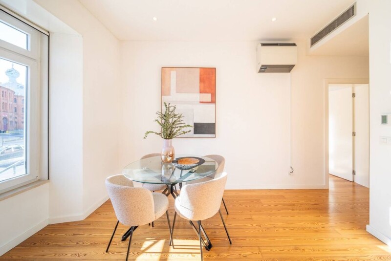 Fully renovated 2-bedroom apartment in a charming, recently renovated building in the heart of Campo Pequeno. Prime location with all commerce and services, public transport, schools, airport and access. This 120 m2 T2+1 apartment, with elevator, comprises: -A living room (25 m2) -A kitchen (14 m2) - with access to a 13m2 balcony -A suite (22 m2) -A bedroom (15 m2) -Social bathroom (8m2) Features: - Air conditioning - Original wooden floors - Double-glazed window frames - Easy parking in area with resident's permit + parking fees in Campo Pequeno park - Solar orientation: East-West with lots of natural light - Enclosed balcony with laundry/office area Campo Pequeno is one of Lisbon's most traditional and central neighborhoods. It offers a lifestyle that combines the tranquillity of an area with less traffic/agitation and allows you to be within walking distance of all kinds of shops and services. An excellent opportunity for those looking for an apartment with generous areas in a building with Lisbon charm in the heart of the city.