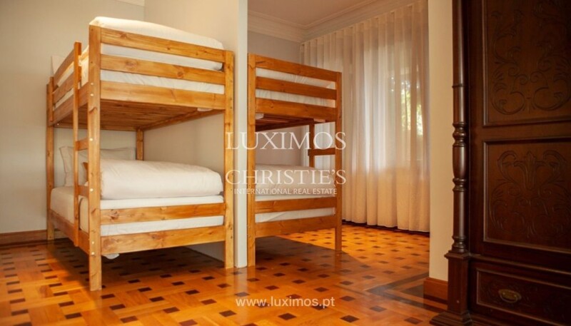 A classic-style detached house set in a large plot of land in the heart of Rio Tinto, Gondomar. It is being used in two ways: as a university residence for 10 months of the year, from September to June, and as short-term accommodation in July and August. it consists of three floors, over which 11 spacious en-suite rooms are distributed, namely 2 double rooms, 2 triple rooms, 6 quadruple rooms, 1 single room and 1 double room.there are a total of 40 beds, with the possibility of increasing this number by converting two existing rooms. Students and guests also benefit from a large, fully equipped kitchen. Outside, the villa has a pleasant terrace and garden with a swimming pool, as well as a toilet and storage area. it is also possible to park some cars inside the property. The villa is also capable of being built to height (a PIP needs to be approved), since a preliminary study carried out last year showed a gross construction area of 2856 m2 (32 one-bedroom apartments, two-bedroom apartments and a store), with a basement for parking. located a 5-minute drive from the São João University Campus, it is surrounded on foot by all kinds of shops and public transport. CHARACTERISTICS: Plot Area: 1 753 m2 | 18 869 sq ft Deployment Area: 308 m2 | 3 315 sq ft Building Area: 576 m2 | 6 200 sq ft Bedrooms: 11 Energy efficiency: E Internationally awarded, LUXIMOS Christie's presents more than 1,200 properties for sale in Portugal, offering an excellent service in real estate brokerage. LUXIMOS Christie's is the exclusive affiliate of Christie´s International Real Estate (1350 offices in 46 countries) for the Algarve, Porto and North of Portugal, and provides its services to homeowners who are selling their properties, and to national and international buyers, who wish to buy real estate in Portugal. Our selection includes modern and contemporary properties, near the sea or by theriver, in Foz do Douro, in Porto, Boavista, Matosinhos, Vilamoura, Tavira, Ria Formosa, Lagos, Almancil, Vale do Lobo, Quinta do Lago, near the golf courses or the marina. LIc AMI 9063.