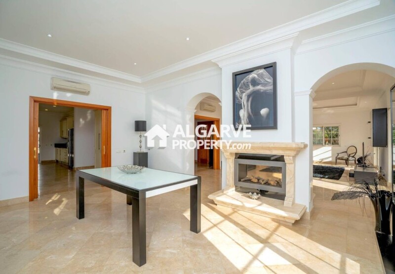 This charming villa is ideally located in a prestigious condominium, guaranteeing privacy. Just a few minutes from Vale do Lobo's golden beaches and leisure activities. With four spacious bedrooms, all en suite and each with a large balcony. The villa includes a large living room and a fully equipped kitchen with top-of-the-range appliances. The luxury furniture was custom-made by a renowned Portuguese factory. The property's main features are a large living room, a bright dining area and a fully equipped kitchen with top of the range appliances creating a perfect combination of comfort and style. Custom-made luxury furniture in a renowned factory in Paços de Ferreira. Year-round comfort with underfloor heating and cooling throughout the home, complemented by seven air conditioning units that provide personalized climate control. It has three water heating systems (gas, electric and boiler), ensuring an ample supply of hot water. It is also equipped with a solar panel system. Closed garage with storage for pool cushions and a wine cellar equipped with refrigeration appliances for wines and champagnes. Covered barbecue area next to the pool, accompanied by tables, chairs and accessories for the best garden and pool area experience. The pool is prepared to install automatic cover and electric heating. The property also has an alarm system with direct connection to the condominium and the police, a parking space for five cars and electric gates. This charming villa offers a unique lifestyle in the Algarve. Mark your visit!.