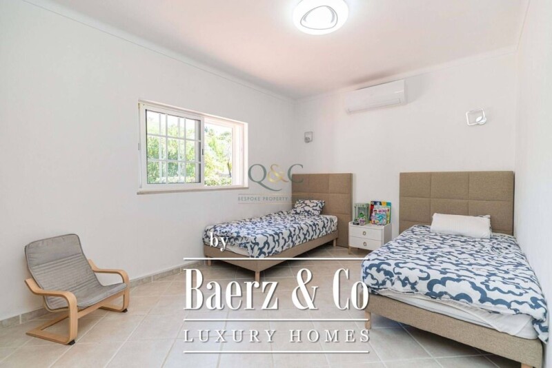 An exceptionally spacious, detached 6-bedroom villa located in a sought-after hamlet just outside the bustling Algarve town of São Brás de Alportel. The property boasts stunning views of the surrounding countryside and sits on a fully fenced and gated plot with a driveway leading down to the double garage. The villa features versatile accommodation spread over four floors, with the added convenience of a lift providing easy access to three of these floors, including the swimming pool, surrounding terrace, and garden. One driveway, equipped with electric gates, leads to the integral double garage on the lower ground floor, while another gated driveway provides direct access to the garden. Upon entering through the gated front garden and the entrance lobby, you are greeted by a light and spacious sitting room that opens onto a generous south-facing terrace. The modern kitchen, fitted with sleek white units and appliances, also includes a walk-in pantry. This floor houses three double bedrooms, one with an ensuite bathroom, and an additional shower room. The internal stairs or the lift, which connects to the outside terraces, lead to three more bedrooms, one of which features a dressing room and ensuite bathroom. This floor also includes a second fully equipped kitchen, a spacious dining room with south facing terrace, and an additional bathroom. The double garage on this level extends to a large room currently used as a gym/playroom, which could easily be converted into a home cinema. From the main lobby, stairs ascend to an expansive area offering multiple possibilities: office space, a library, or a quiet relaxation area. This space opens onto the main roof terrace, where the villa's solar panels are located. At the garden level, next to the swimming pool and terrace, there is a spacious entertainment room with a jacuzzi and a shower room with a shower, WC, and basin. The heated pool, complete with a cover, and the surrounding terrace enjoy an elevated position in the garden. As you wander through the landscaped garden, you will discover various areas for relaxation, including a seating area by a water feature with a fountain and a play area with astroturf. This villa is ideally situated close to both São Brás de Alportel and Loulé, with Faro airport and the Algarve's beaches just a twenty-five-minute drive away. It is a fantastic family home or a property offering the potential for independent living. This property is presented by Quintas and Casas, voted the best boutique real estate agency in Portugal in 2024.