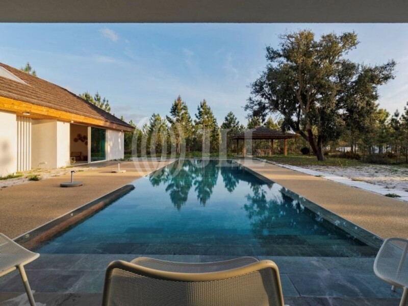 3+1 Bedroom house with 454 sqm, brand new, with private swimming pool, in one of the most beautiful and unspoiled areas of Portugal, the new Estates at Spatia Comporta is a luxurious and elegant resort located about 1 hour from Lisbon. Surrounded by golden sand deserted beaches and pine forest, this project stands out for the modern architecture villas and for the large areas that invite to enjoy the unique nature of the space. Decorated by sand dunes and pine forest, speckled with the blue of the Atlantic Ocean and the sun, the modern architecture villas with wide and airy spaces are perfectly integrated into the Mediterranean landscape and in perfect harmony with nature, culture, and local traditions. The Estates at Spatia Comporta is a luxury resort designed to meet the highest standards of those seeking true luxury, comfort and sophistication, and includes all the services that make the experience even more complete and exclusive. Comprising a Clubhouse with Reception, Lounge, Restaurant and 2 Swimming Pools, 20 Hotel Rooms and 38 exclusive Villas, types V3 and V4, an architectural style that combines a contemporary look with the Comporta's identity, with a patio area ranging from 1 to 6 hectares that offers a perfect harmony with nature, and gross floor areas ranging from 436 to 514 sqm. There is also a Beach Club, with 3 km of sand, just 15 minutes away. Energy Rating: A.