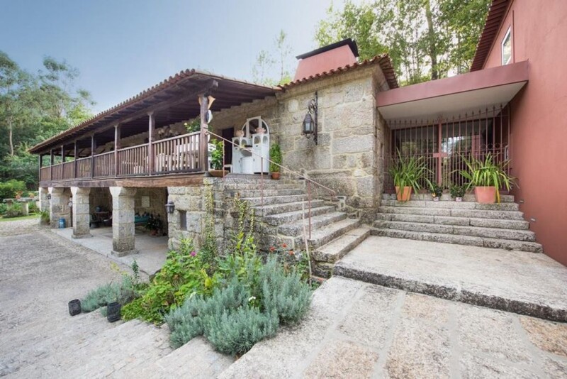 This magnificent farm in Amares has a total building area of 491sqm, distributed as follows: in the main house, the ground floor consists of two suites and storage spaces, on the first floor an ample living room, a dining room, a brand-new equipped kitchen, an old kitchen, a library, a social bathroom and a magnificent balcony along the entire living area.Next to the main house, there´s another more recent house, linked to the old one, presenting 4 suites and storage spaces. The house is equipped with rotating solar panels. The farmhouse is set in a 4.6 ha property with irrigated arable crops, vines, olive trees, chestnut trees and forest (pines and eucalyptus) in a privileged area for hiking.For outdoor leisure, between the long sunny days and the sparkly sky, the house has a salt water pool, in an environment where you can relax with great privacy having the typical peace of a retreat. This is an ideal location to taste the traditional gastronomy and the wines of the region, to visit its historical and cultural heritage and to practice outdoor activities in contact with nature. This property is 50 minutes away from Porto´s International Airport.