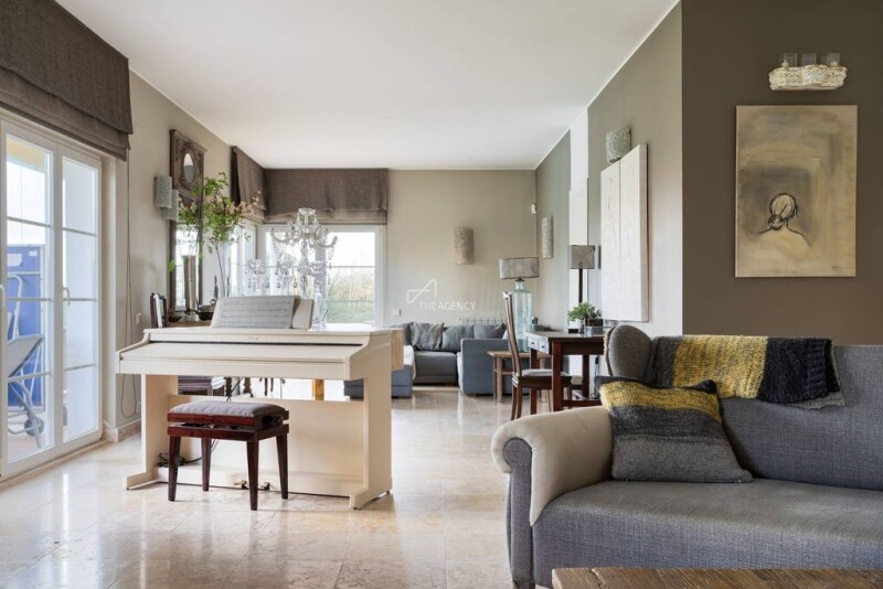 Set on a plot of 815m2 with a lovely view over the Penha Longa golf course, this 312m2 residence is a unique family retreat. The ground floor encompasses a large living room of 65m2 connected to a spacious dining area and a fully equipped kitchen with an adjoining multipurpose room. Additional facilities include a guest bathroom, a laundry room, a cozy hall, and a conveniently located suite. The living and dining room opens onto a landscaped garden with terraces. Part of the terrace has a distinctive enclosed section that protects it from winter winds, improving the usability of the outdoor space. Rounding out the outdoor life is a generously sized swimming pool, perfect for relaxing and swimming. The garden also offers captivating and uninterrupted views of the Penha Longa golf course. Going up the stairs to the first floor, we access three bedrooms: the master bedroom standing out for its large areas, a relaxation area with a small outdoor space, a closet, and a spacious bathroom. The other 2 bedrooms share a bathroom. From the first floor, you can get incredible, uninterrupted views of the surroundings. There is also another staircase that allows access to an office area, providing a dedicated space for work. This house is characterized by abundant natural light, large areas, and a family-friendly layout, making it an ideal place for comfortable living. Penha Longa's privileged location within the Sintra-Cascais Natural Park ensures easy access to Lisbon and Cascais. The nearest prestigious schools are the Salesian College of Manique, the International School of Lisbon, and the recently opened Kings College, and there are also very convenient shopping options.