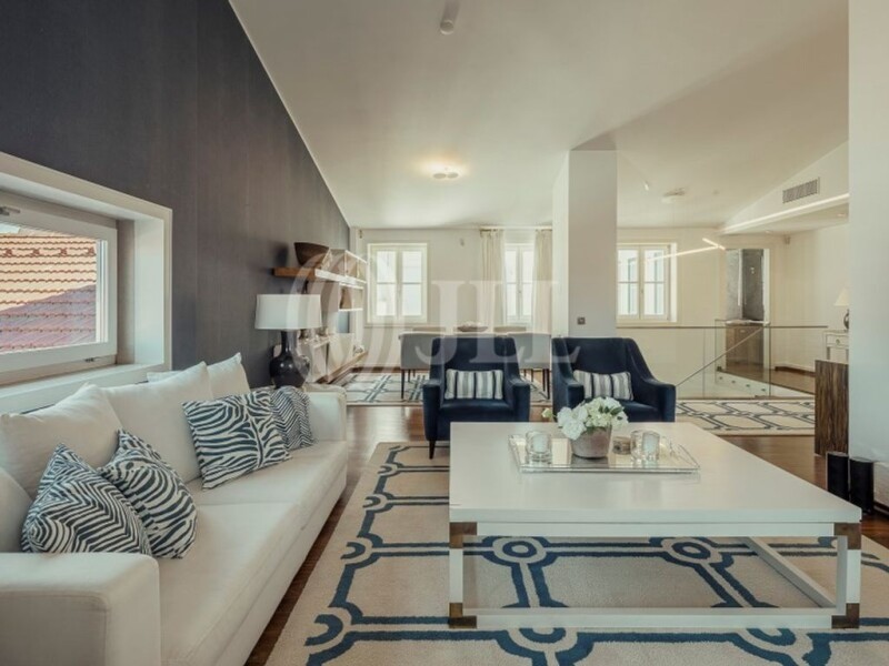 Duplex penthouse 2+1 bedroom apartment with 236 sqm of gross private area, balconies, two parking spaces, and a storage room, located in the iconic Garrett 29 condominium, in the heart of Chiado, known for its quality construction and luxury finishes in a Pombaline building. The ground floor features an entrance hall, laundry room, two ensuite bedrooms, one of which has a walk-in closet and a fireplace. The upper floor consists of a contemporary kitchen with Gaggenau appliances, a guest bathroom, an open-plan living room with 46 sqm, and a dining room, which is currently being used as a third bedroom. The apartment is equipped with a home automation system, air conditioning, fireplaces, and double-shutter windows. The high-quality finishes include Carrara marble flooring in the kitchen and bathrooms, and sucupira wood in the bedrooms and living rooms. Located on Rua Garrett, one of Lisbon's most prestigious areas, with shopping and public transportation just a few meters away from Chiado's warehouses, Rossio Square, Santa Justa Lift, Avenida da Liberdade, and Foz Palace. Within a 20-minute drive from Marques de Pombal Square, Amoreiras Shopping Center, Lycee Francais Charles Lepierre, Odd School, and Salesianos de Lisboa. 30 minutes away from Humberto Delgado International Airport in Lisbon. Energy Rating: C.
