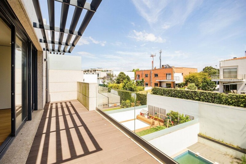 Extraordinary five-bedroom villa, with 336 square meters of private gross area, which is developed over four floors, supported by an elevator. It has four suites, one of them with communication with a bedroom. It has excellent quality finishing, climate control with underfloor heating through a heat pump, solar panels, central vacuum cleaning system and surround sound system. The kitchen has a lacquered finish and "De Dietrich" equipment. The bathrooms are coated in marble. It also has a patio of 105 square meters with a deck area, a nice outdoor pool and a garage with 76 square meters with capacity for four cars. With an excellent location, this villa is near one of the main roads of the city with easy access to the highway and other points of interest. Nearby you can find the City Park and the International School of Porto (CLIP), as well as shops and several services such as pharmacy, police station, hospital, among others. Boavista Avenue is one kilometer away and the beaches of Matosinhos and Foz are less than 20 minutes away on foot.