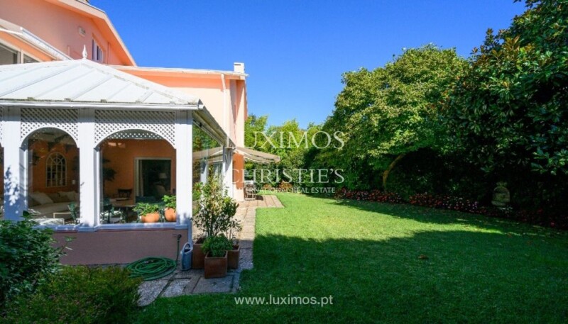 This contemporary two-storeyvilla stands out for its privileged location between Serralves and Marechal, in one of Porto's most exclusive and valued areas, offering an atmosphere of refinement and tranquillity. The house is masterfully set on a plot of almost 1,000 m², guaranteeing absolute privacy and total discretion from the street. With ample indoor and outdoor spaces, a perfect balance between functionality and seclusion is guaranteed. The social area consists of an elegant living room and a generous dining room, both designed to offer cozy and spacious environments for moments of leisure and socializing with family or guests. The large glazed openings allow full communication with the gardens outside, amplifying the feeling of luminosity in the interior spaces. The winter garden is one of the most interesting spaces in the property, with a Mediterranean atmosphere that is both welcoming and informal. The office is a more austere space, where the exquisite boiserie and fireplace take us back to another era. The lower floor is complete with a guest toilet and a fully equipped kitchen, as well as a pantry and laundry room, and a bedroom with a bathroom. On the second floor, the house has four bedrooms, two of which are suites. The attic has been converted into a charming suite where all that remains is to install the bathroom fittings. Outside the main house, the property has a garage building where two cars can be parked. Below the garage is a room with natural light, a bathroom and storage, which can be used independently, either to receive guests or to accommodate staff. This villa is the ideal refuge for those looking for a balance between proximity to the city center and the serenity of one of Porto's quietest areas. Close to the French College and the Serralves Foundation, this property is also just a few minutes away from the city's main transport links, and enjoys all the infrastructures that are being created to further improve the already excellent quality of the location. CHARACTERISTICS: Plot Area: 935 m2 | 10 064 sq ft Deployment Area: 234 m2 | 2 514 sq ft Building Area: 361 m2 | 3 887 sq ft Bedrooms: 5 Bathrooms: 4 Garage: 2 Energy efficiency: A+ FEATURES: Sun exposure South-East-West. Oak parquet flooring. Central heating; Air conditioning in one of the suites. borehole and company water. Full alarm system, video intercom and security door. Automatic irrigation system. Solar panels. Internationally awarded, LUXIMOS Christie's presents more than 1,200 properties for sale in Portugal, offering an excellent service in real estate brokerage. LUXIMOS Christie's is the exclusive affiliate of Christie´s International Real Estate (1350 offices in 46 countries) for the Algarve, Porto and North of Portugal, and provides its services to homeowners who are selling their properties, and to national and international buyers, who wish to buy real estate in Portugal. Our selection includes modern and contemporary properties, near the sea or by theriver, in Foz do Douro, in Porto, Boavista, Matosinhos, Vilamoura, Tavira, Ria Formosa, Lagos, Almancil, Vale do Lobo, Quinta do Lago, near the golf courses or the marina. LIc AMI 9063.