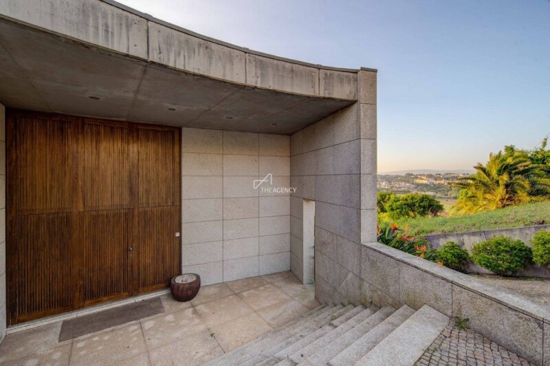 We present a mansion located in the city of Águeda's Umbrellas, with a land area of 3,012 sqm and a construction area of 826 sqm. The three-story villa has a gross floor area of 540 sqm, with the possibility of installing an elevator for interconnection between floors. On the 0th floor, we find a suite perfect for guests, next to a spacious living room and a dining room that create a warm and inviting atmosphere. We also find a private dining room and office space and library that offer a quiet environment for work or relaxation. The villa includes a fully equipped kitchen and a spacious wine cellar that ensures the storage of a collection of wines in ideal conditions. For added convenience, there is a laundry area and a staff room, and a large garage to accommodate three vehicles. Going up to the first floor, we find the master suite from where it is possible to get stunning views while relaxing in a quiet environment and perfect for relaxing. We also find two additional bedrooms with a shared bathroom and also access to the terraces with panoramic views of the surroundings of the property. Descending to the lower floor, it is possible to find an indoor pool, inviting and suitable for any season of the year, as well as a spacious event room equipped with a pool table, bar, and sound system, making it a perfect space to hold parties and meetings. The wood-fired oven and service kitchen ensure that the event service is easy to perform. There is a direct train station to Águeda, and the property is located just a 20-minute drive from the picturesque town of Aveiro and 45 minutes from the city of Porto. The city of Águeda is known for its famous Umbrella Sky during July, August, and September when the streets of the city dress up in 3000 colorful umbrellas. The space, the exclusive amenities, and the high-quality building materials are features that distinguish this villa.