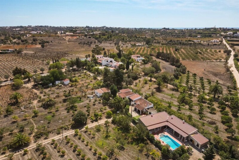 The main attraction of this captivating country estate lies in its potential for combining wine and agriculture production with accommodation for tourists. With over 10 hectares of land, five (potentially six) houses with existing AL licenses, this property is ready to fulfill its potential as a thriving tourism and production venture or creating events/hospitality in gorgeous settings. The estate features five houses each offering privacy with separate entrances. Each house has an individual swimming pool and there is a tennis court onsite. A license for constructing another 365m2 building has already been approved with the option of adding a sixth house to the estate. Water is supplied by an onsite well, cisterna. The main house consists of a big living room with a fireplace, a spacious kitchen with dining area, an office, 5 double bedrooms, 1 single bedroom and 2 bathrooms. A balcony runs around the house on the first floor and a huge roof terrace offers spectacular views over the surrounding landscape. Adjacent to the main house is a 3 bedroom villa with 2 bathrooms, kitchen, cozy sitting rooms and a wonderful terrace. Behind the main house lies a charming 3 bedroom villa with bathrooms, kitchen and a guesthouse. A bit further down from the main house lies two additional well equipped 2 bedroom properties. The estate’s location near Carvoeiro, Ferragudo and Lagoa offers easy access to Algarve’s stunning beaches, quaint coastal towns, and 5-star golf courses. The A22 motorway leads to Faro International Airport in only 45 minutes.