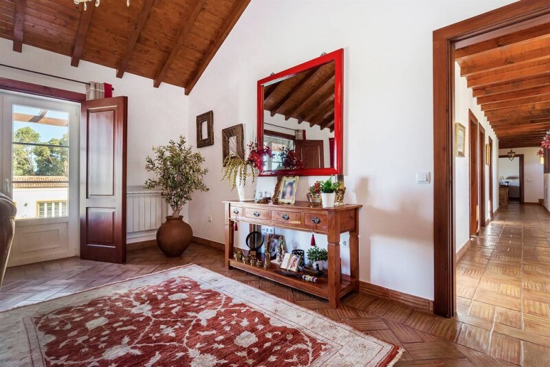 Magnificent property with a total area of 23,400 m², with main house, swimming pool and annex. The main house, with an area of 286 m² (typology T4+1), comprises a living room with a fireplace, a dining room also equipped with a fireplace, a kitchen, two en-suite bedrooms, two additional bedrooms with a supporting bathroom, and an office. Both the exterior and interior feature a traditional/rustic style, with wooden ceilings that provide comfort and make the atmosphere even more welcoming. Outside, the house offers a covered parking/leisure area, barbecue area, laundry room and a technical area (central heating). The swimming pool, measuring 10x5 meters, guarantees total privacy and offers stunning views of the valley. The annex, with around 200 m² spread over two floors, includes on the first floor a large lounge with a fireplace, a bathroom, a storage area of approximately 13 m², and outside, a 35 m² barbecue shed. On the ground floor, there is a large storage area, two bathrooms and the engine room. The property is enriched by a borehole, pine trees, eucalyptus, strawberry trees, olive trees, cork oaks and various fruit trees. There is also a ruined building with a land registry, which could be rebuilt. A plot of land adjoining the house, measuring around 5,000 m², could be set aside for possible urbanization and construction. The farm offers great agricultural potential and ample space for developing leisure areas, such as gardens, small lakes, wooded trails, and sports facilities, such as a tennis court or basketball court. This is an exceptional place to live in tranquillity and perfect harmony with nature, just 5 minutes from the unspoiled Ribatejo town of Azambuja, next to the River Tagus, in a prime tourist area, and 30 minutes from the capital, Lisbon.