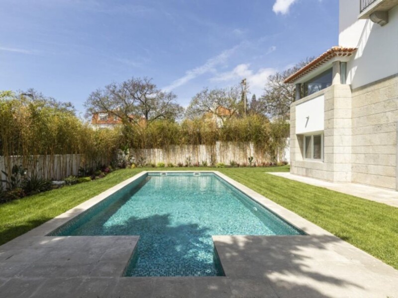Detached villa of the 40's, fully recovered, located in the most prestigious area of Restelo. It is composed by 3 floors and elevator, being distributed as follows: - Ground Floor Main hall: 19 sqm Social bathroom: 3 sqm Hall of the kitchen: 8.5 sqm Living room: 70 sqm Dining room: 43 sqm Kitchen: 26 sqm Terrace: 128 sqm - First Floor: 4 suites and 1 office Suite 2: 18 sqm Bathroom of the suite 2: 4.4 sqm Suite 3: 21 sqm Bathroom of the suite 3: 6 sqm Suite 4: 16 m 2 Bathroom of the suite 4: 6 sqm Suite 5: 2 60 sqm Closet of the suite 5: 9 sqm Bathroom of the suite 5: 11 sqm Office: 12 sqm Storage area/clothing: 7 sqm - Floor -1 Big living room with access to the garden and swimming pool: 46.5 sqm Social bathroom: 3 sqm Suite 0: 15.35 sqm Bathroom of the suite 0: 3.6 sqm Suite 1 + Closet: 16.5 sqm + 9 sqm Bathroom of the suite 1: 11 sqm Garage: 113 sqm Storage areas: 4.5 +3+15 sqm Space intended for wine cellar: 4 sqm Laundry area (Miele): 7 sqm - Exterior floor -1 Garden: 626 sqm Heated swimming pool: 48 sqm Gym, sauna and shower: 15 sqm High-end equipment (examples): - Miele household appliances - Mitsubishi Air conditioning - Schmitt&Sohn Elevator - Green Forest Stones, Armani Grey, Sahara Noir - Villeroy-Boch crockery - Scandinavian window frames and Italian wardrobes - Borehole for watering and swimming pool - Drainage system in the garden The villa has plenty of potential and personality, with large dimensioned and well distributed divisions, in one of the most iconic arteries of Restelo, where embassies abound. Discreet, since it exposes only part of its timeless facade, it is oriented to East, South (where the garden is placed) and West, following totally the trajectory of the Sun. The neighbourhood of Restelo, also known as the embassy neighbourhood, is next to the Tagus River and is one of the most prestigious and safe in Lisbon. It is fundamentally sought after by Portuguese and foreigners of high economic resources who are looking for space, privacy and security. Offers: Portuguese and international public and private schools Public and private hospitals and clinics Restaurants Cultural Centre of Belem Naval Club Sports complex Green areas All sorts of services and conveniences Energy Rating: A.