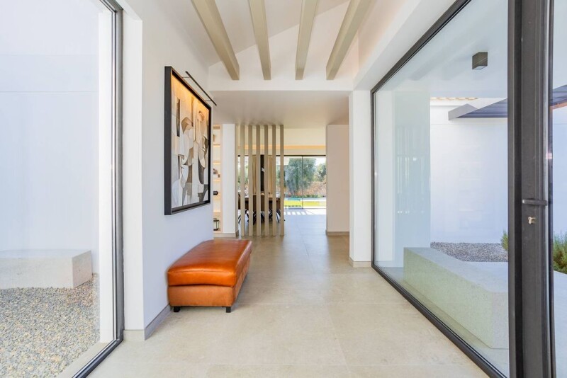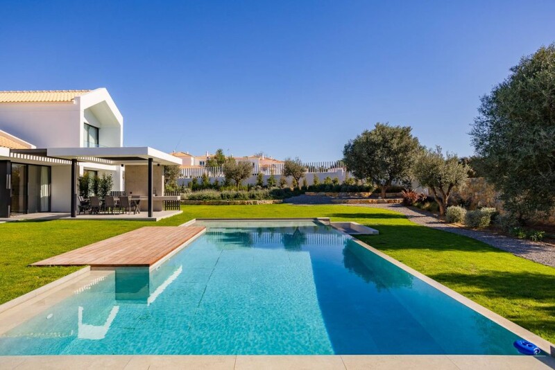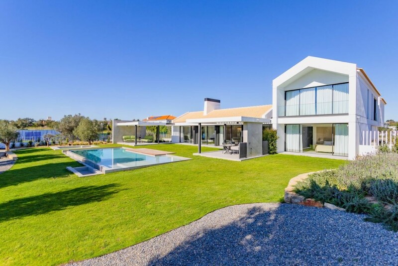 Independent house located in a privileged area of Vilamoura. This property with modern architecture with traditional aspects such as its roofs and mostly ground floor design, has 420m2 of construction facing south, located on a plot of approximately 3000m2. Inside we can count on very large spaces and high ceilings, and in all rooms, even on the first floor, we find large windows that practically replace the main facades, providing plenty of light throughout the house and greater involvement of the interior space with the exterior. . Six spacious bedrooms with storage, 5 of which are en-suite and their access to the remaining rooms of the house are synonymous with design at its best in a construction designed for comfort and quality. Outside, between the entrance gate and the house, there is space for 6 vehicles, where there is now a car-port and access to the garage with space for 4 vehicles through a ramp with a reduced inclination and space for maneuvering designed for the movement and parking of sports vehicles. This garage area also consists of 3 more rooms, designed for laundry space, bathroom and cinema room with direct access via interior stairs to the upper floor. The entire surrounding exterior is made up of different green spaces with olive trees, various plants and a large grass area where we can also find two masonry pergolas in front of the pool, providing lounge and leisure spaces. In symmetry with its 12 meter long pool, the deck provides access to the rest of the garden and the social space consisting of a magnificent fire-pit inserted into the greenery of its garden. Its self-sufficiency in energy resources and classification is the result of the latest generation and quality equipment installed, complemented by the carefully chosen construction materials and applied decorative finishes. This unique villa provides maximum privacy, tranquility and well-being, located just a few meters from the main accesses to the center of Vilamoura and the remaining main access points, being located just a few meters from the renowned Colégio Internacional de Vilamoura.