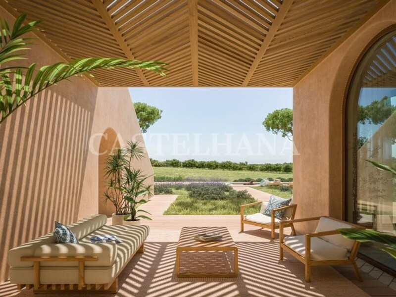3 bedroom duplex villa with swimming pool set in a new tourist resort located between Comporta and Melides, one of the most privileged European summer destinations in the world, within walking distance of the most pristine beaches in Europe and just over an hour south of Lisbon. Consisting of 16 contemporary villas from two to five bedrooms, with stunning architecture, integrated in generous plots with private pools, rooftops, exquisite finishes and high quality materials, with total privacy, privileging the relationship between the interior and the exterior space and in perfect symbiosis with the local landscape. With essential and refined concierge services, it fosters a relaxed atmosphere and is the perfect escape from city life for nature lovers. All villas are delivered fully furnished with soft materials, neutral tones and natural textures. Comporta, with its pristine landscapes and laid-back atmosphere, represents the perfect place to escape city life. Nature lovers can explore the acres of unspoiled territory, the amazing dunes, pine forests, and rice paddies. A unique landscape ideal for hiking, cycling and horseback riding, or water sports, while the nearby Sado estuary is a paradise for birdwatchers. Whether you are looking for a holiday home, or a permanent residence, this project is the perfect choice, the ideal getaway surrounded by natural beauty. Don't miss this opportunity. Request more information now! For over 25 years Castelhana has been a renowned name in the Portuguese real estate sector. As a company of Dils group, we specialize in advising businesses, organizations and (institutional) investors in buying, selling, renting, letting and development of residential properties. Founded in 1999, Castelhana has built one of the largest and most solid real estate portfolios in Portugal over the years, with over 600 renovation and new construction projects. In Lisbon, we are based in Chiado, one of the most emblematic and traditional areas of the capital. In Porto, in Foz do Douro, one of the noblest places in the city and in the Algarve next to the renowned Vilamoura Marina. We are waiting for you. We have a team available to give you the best support in your next real estate investment. Contact us! Energy Rating: A.
