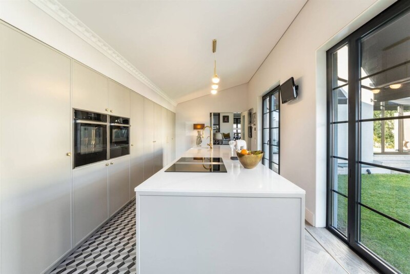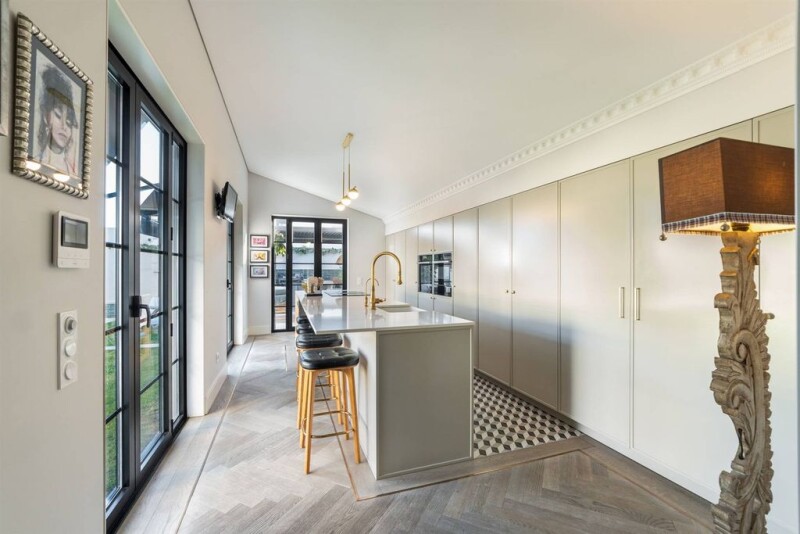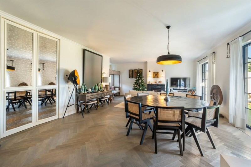 Contemporary three-front house with four bedrooms and 341 square meters of gross construction area, located in Bairro Gomes da Costa. The ground floor accommodates the entire social area, an office/library, and a bathroom. The spacious and bright entrance hall offers plenty of storage and leads us to the living room, which features a heat recovery system and direct access to the garden. The kitchen, with 20 square meters, is slightly elevated and has connections to both the living room and the outdoor porch. It is fully equipped with high-end appliances, including a BORA integrated exhaust cooktop, oven, heating drawer, microwave, refrigerator, freezer, and NEFF dishwasher. The private area on the upper floor houses a 27-square-meter master suite with a closet, bathroom with double sink, shower, and bathtub in the bedroom area, two suites with built-in wardrobes, and a guest suite. The bathrooms of the master suites benefit from natural light. The lower floor offers a cozy cinema/leisure room, a well-organized laundry room, a technical area, and a support bathroom. Outside, greenery predominates and is complemented by a heated pool, sitting, and leisure area. The house underwent a complete renovation in 2022, with a focus on comfort and housing efficiency, including good thermal and acoustic insulation. The exterior of the house is coated with capoto, and the interior walls are lined with cork. The finishes are of high quality, with sculpted marble countertops in the bathrooms. Heating is provided by electric underfloor heating throughout the house, and hot water is heated by a wall-mounted gas boiler. All rooms are incredibly well-lit. The total exterior area of about 200 square meters ensures great privacy for living both inside and outside. The house includes a closed garage for one car, with the possibility of parking two additional cars outside. Located near top international schools and colleges, close to the Serralves Museum, and within walking distance of the Douro River, the sea, and the beach. It is well-served by all types of commerce and services, all within a short walk.