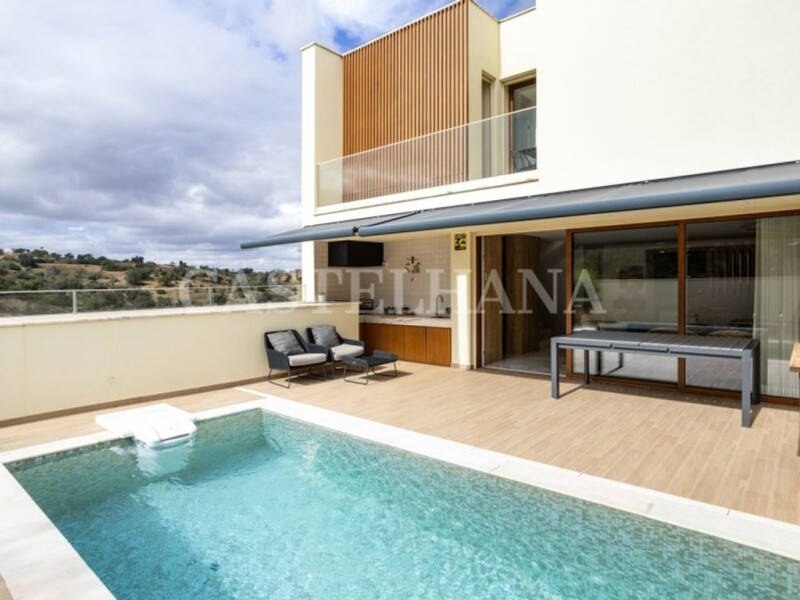 3 bedroom villa in Albufeira, inserted in a private condominium with excellent location and easy access. This townhouse, with three bedrooms, one en suite, also has an open space living room, with large windows that give access to a spacious deck, with swimming pool and barbecue. The kitchen is fully equipped and is supported by a covered outdoor space, ideal for informal meals. With excellent finishes, this villa is sold fully furnished and is equipped with air conditioning, alarm, solar panels (water heating) and photovoltaic, electric shutters, retractable electric awning, covered private parking with installation for self charging. With easy access to the centre of Albufeira and the highway, it is also served by hypermarkets and other types of commerce and services less than 5 minutes walk away. It is 1km from Fisherman's Beach and Albufeira Downtown. 40 minutes from Faro International Airport. Don't miss this opportunity! For over 25 years Castelhana has been a renowned name in the Portuguese real estate sector. As a company of Dils group, we specialize in advising businesses, organizations and (institutional) investors in buying, selling, renting, letting and development of residential properties. Founded in 1999, Castelhana has built one of the largest and most solid real estate portfolios in Portugal over the years, with over 600 renovation and new construction projects. In the Algarve next to the renowned Vilamoura Marina. In Lisbon, in Chiado, one of the most emblematic and traditional areas of the capital, and in Porto, we are based in Foz Do Douro, one of the noblest places in the city. We are waiting for you. We have a team available to give you the best support in your next real estate investment. Contact us! Energy Rating: A+.