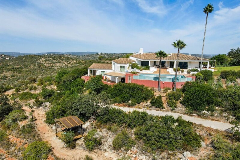 Casa Rosa dos Ventos is a 1.5-hectare property located in the Algarvian Hills, just a few minutes' drive from the beaches, offering stunning views of both the sea and the mountains. This traditionally styled Algarve home is perfectly integrated into the landscape, featuring a well-maintained garden and an infinity pool with views over the ocean. The house has been fully renovated and includes a kitchen, dining room, two living rooms, three en-suite bedrooms, a guest WC, and a magnificent entrance hall, where a central fountain in an interior garden can be seen, along with south-facing views as you enter. On the ground floor, there is an annex with a separate entrance and bathroom, which can be used as a guest room, games and entertainment room, or gym. The house is surrounded by several charming terraces and patios, with delightful spots to enjoy the panoramic views. The exterior garden offers various areas to relax and take in the scenery, including a dining area and a wonderful yoga and meditation space, with a deck and covered pergola, set within the garden. The property also includes an independent studio, equipped with a small kitchen and bathroom, a water borehole, a 500-litre heat pump, and solar panels for water heating. In the garden, there are several fruit trees and vines. This is the perfect location for walks, both within the property, which offers peaceful trails across its extensive grounds, and in the surrounding area, where the natural landscape of the Algarvian Hills invites exploration. Casa Rosa dos Ventos is ideally located for those seeking a home in the Algarvian Hills, being less than 15 minutes by car from the beaches and golf courses, 20 minutes from Faro airport, and only 5 minutes from the nearest village and all kinds of amenities.