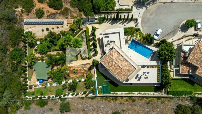 Virtual Tour | Video A deluxe fully furnished villa affording an elevated location with marvellous sea and country views in a tranquil housing estate, within a short drive of beautiful beaches, golf course and Albufeira old town and marina. Basement: Spacious garage for several cars, toilet and storeroom.Ground-floor: Living and dining room with a central wood-burning stove and patio doors leading out to pool area, fitted kitchen, a bedroom, an office room (currently used as a bedroom), 2 bath/shower rooms en-suite, lavatory, laundry room.First floor: 2 bedrooms with en-suite bath/shower rooms and large terraces overlooking the pool enjoying beautiful views over the valley until the sea. Current owners purchased the surface right of 1,000 sqm of the adjacent plot. This area was landscaped and currently features several fruit trees, shrubs and solar panels (photovoltaic microgeneration which feeds the grid).