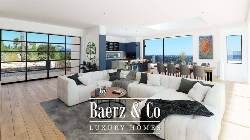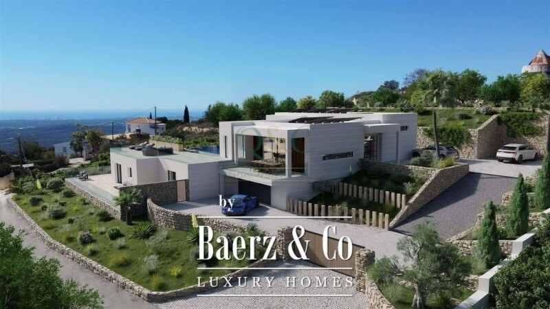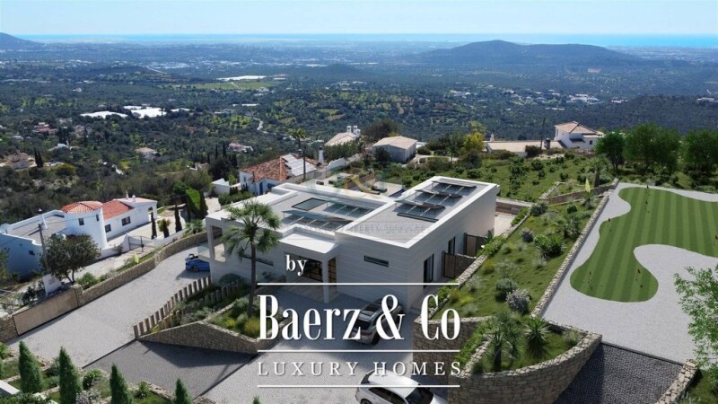 Located in the Loulé hills, with fantastic Sea and Country views, this 5 bedrooms-5 bathrooms property is the region´s first Net Zero Energy House. This high performing low maintenance villa ensures your contribution to the environment while providing great comfort and contemporary design for a modern lifestyle in a natural environment. The ground floor is composed of a large open space with a living room, kitchen and dining room that leads right to the pool area with an astonishing sea view. A big skylight is set over the dining room area. On the first floor, a long hallway gives access to a guest bedroom and a master bedroom with large windows overlooking the pool and direct access to a covered terrace that connects to the pool area. Below, we find 3 bedrooms with ensuite bathrooms, Gym, Games Room, Garage and Utility Room.