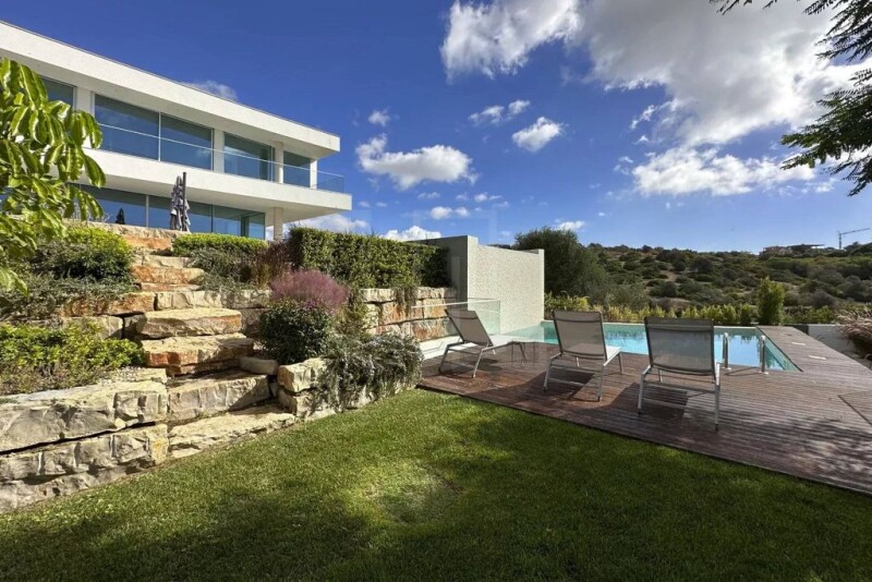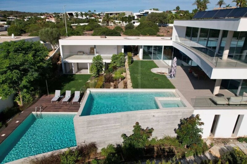 Extraordinary contemporary villa located in idyllic Porto de Mos region of Lagos with breathtaking views of the sea and the coastal landscapes and countryside. Situated in a private position offering absolute intimacy. A true seaside paradise, immersed in nature, this area is one of the most coveted in the city, only a 5 minute walk to the most spectacular beaches. The modern 250 sq.m villa features an innovative design of soft and elegant curves, creating a bright and spacious atmosphere. It comprises a fully fitted kitchen, living room, modern office with separate entrance, 6 bedrooms and 9 bathrooms, including a 2 bedroom independent apartment ideal for guests. There is also a playroom, large storage area, cinema room and spa area. The unique basement level could easily be transformed into a wine cellar or music area. The exterior area offers the perfect space for outdoor living with the impressive garden created by renowned landscaping company Jardim Vista and detailed by Richard Wescott, is a true masterpiece. Fragrant with flowers and fruit, the garden changes colour throughout the different seasons and features a majestic 200-year-old olive tree. Special features include a spacious terrace, a space to seat 12 people around the outdoor volcanic stone fireplace, a swimming pool and a jacuzzi. Other features include an automatic irrigation system, solar panels, underfloor heating and private parking.