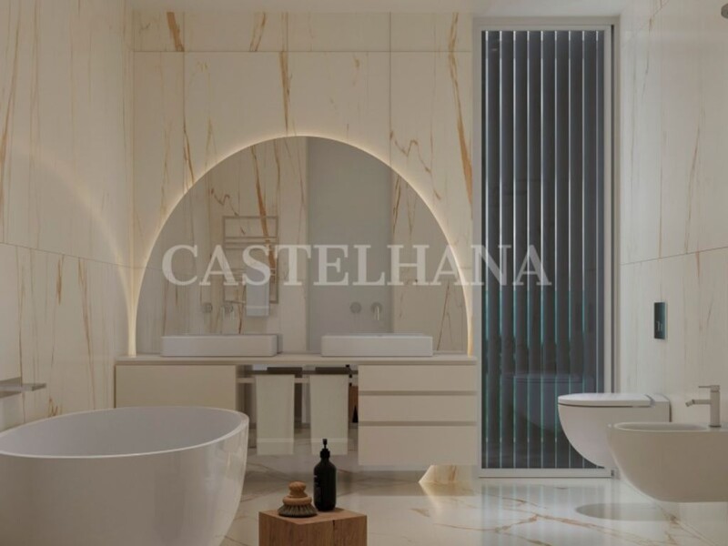 4 bedroom villa with 263 sq m, balcony area with 26 sq m, terrace of 46 sq m, garden with swimming pool with 157 s qm, in the most recent development in Praia da Madelana. A Gift consisting of 6 luxury 4 bedroom villas with swimming pool and private garden, 300 meters from Madalena beach, in Vila Nova de Gaia. A development that stands out for its balconies and terraces with superb views of the sea, the fully equipped kitchen with top-of-the-range appliances, the all-suite rooms and the spacious interiors, the bright rooms and the luxury finishes. A project of three-storey villas all with private lift, with very nice areas and lots of natural light. On the 1st floor is the bedroom area, on the ground floor the social area and in the basement the garage and a huge space that can be a leisure room, a cinema or games room, which are organised in a functional way, articulating the interior and exterior space. In this development, all villas have a private pool. They are located on plots of land ranging from 222 s qm to 657 s qm, just a few minutes from Madalena Beach. Close to the main communication routes, and with a wide range of shops, schools, health services and leisure and cultural activities. Just 20 minutes from Francisco Sa Carneiro Airport, 10 minutes from the centre of Vila Nova de Gaia and 15 minutes from the centre of Porto. Don't miss this opportunity. Request more information. Castelhana is a Portuguese real estate agency present in the national market for more than 20 years, specialised in the prime residential market and recognised for the launch of some of the most notorious developments in the national real estate panorama. Founded in 1999, Castelhana provides a comprehensive service in business mediation. We are specialists in investment and real estate marketing. In Porto, we are based in Foz Do Douro, one of the noblest places in the city. In Lisbon, in Chiado, one of the most emblematic and traditional areas of the capital and in the Algarve region next to the renowned Vilamoura Marina. We look forward to seeing you. We have a team available to give you the best support in your next real estate investment. Contact us! Energy Rating: A+.