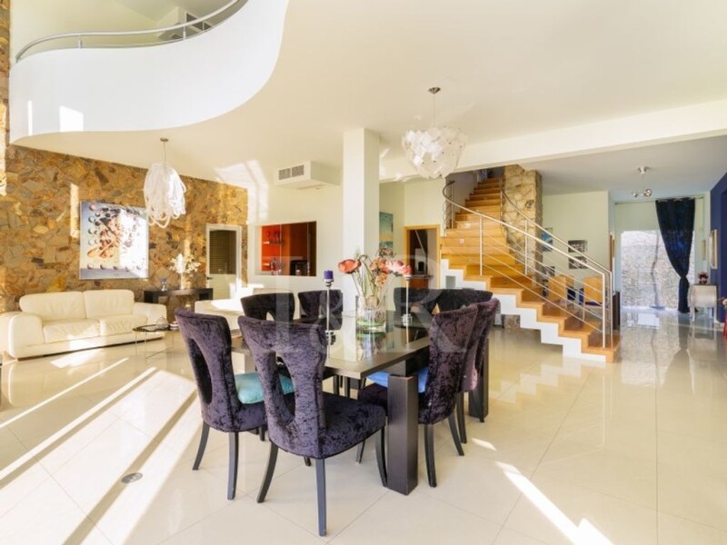 Luxury 5-bedroom villa for sale in Albufeira, located in a very calm and peaceful area, 5 minutes from Praia da Oura and 40 minutes from Faro Airport. This villa of contemporary architecture is spread over three floors and benefits from everything we can aspire to in a home: large and open social areas, common room of 100 sqm, and a fully equipped kitchen with wine cellar, American fridge, island with induction hob, grill , coffee machine incorporated, among the other usual household appliances. The most private area of this luxury villa consists of five bedrooms, all with generous areas. The master suite, in addition to its 40 sqm, has a closet with 20 sqm and a relaxing Spa, covered with ceramic tile with chromatic shower and Turkish bath. This suite also has connection to a second room, currently used as a child's room, but which was initially designed to accommodate a gym, and has a zenith window that allows the observation of the stars. Notable for the abundant light on all floors, coming from the large windows, this luxury villa also has a 35 sqm2 office, a 50 sqm library and a 20 sqm laundry room. The wavy geometry of the pool accompanies the architecture of the house, reflected in the design of the mezzanine and the various false ceilings. Outside, it is worth mentioning the large covered terrace with barbecue and the summer kitchen, adjoining the pool. There is also an independent apartment of 80 sqm, consisting of a living room, two bedrooms, kitchen and a bathroom, which complete this luxury villa. Exclusive and contemporary, this house not only has excellent finishes, but was carefully studied in a careful architectural project, in which no detail was left to chance. Energy Rating: B-.