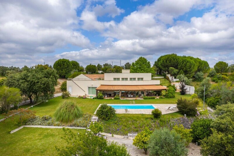 Fabulous contemporary villa and guest house in the countryside, in Santarém, only 1 hour from Lisbon. Maximum comfort and elegance in the greatest tranquility. • Main House- 540 m2 of built area under a contemporary architectural project. Very well sheltered and integrated into the land, it has the ideal solar orientation. The high level of comfort and a low maintenance cost are ensured by the solid construction, a careful selection of materials, and the equipment used. • 2 reception rooms with fireplace. • Porch with various spacious living and dining areas • 3 suites • Office/room • Kitchen • Outdoor grill kitchen • Laundry • GarageTechnical area • Lumberjack and Engine Room Independent Guest House, 250 m2 with: • living room with fireplace • playroom • garden porch • 3 suites • fully equipped kitchen.