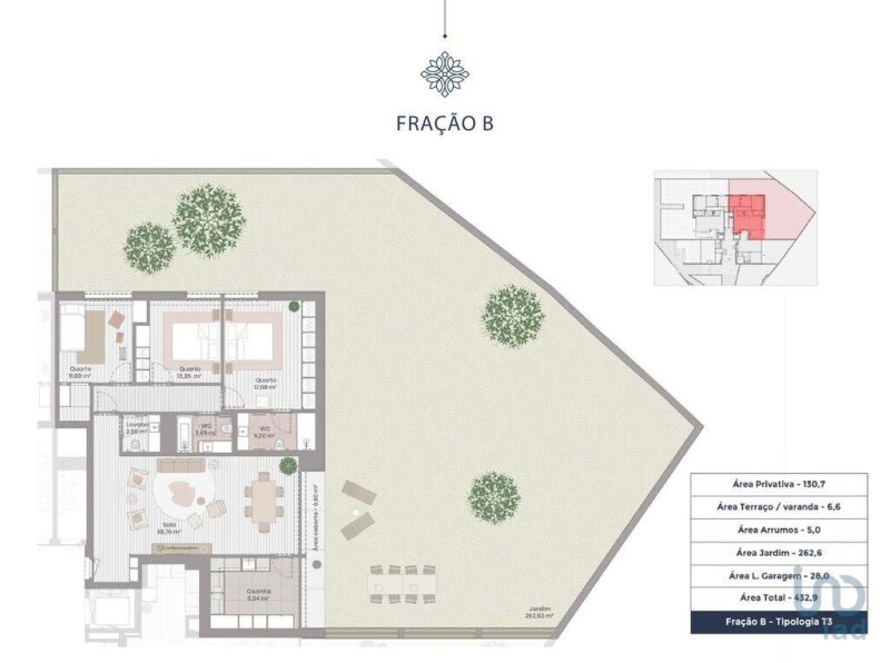 Prelate Gardens 3-bedroom apartment - Unit B - with 262 m2 of garden and 2 parking spaces Located in Prelada, one of the most promising and peaceful areas of Porto, this is a development that combines modernity, comfort and quality of life in the right measure. Designed to combine elegance and functionality, Prelada Gardens stands out for its carefully planned design. The 3-bedroom apartments offer spacious, well-lit spaces, where every detail has been designed to provide sophistication and comfort, with high-quality finishes that guarantee a sophisticated environment and a unique living experience. Every detail of this development was designed to offer a superior and differentiated living experience. The apartments combine functionality and comfort, standing out for the following features: Fully equipped kitchen with state-of-the-art appliances, combining efficiency and modernity. Large rooms with balconies, providing bright spaces and privileged views of the garden – ideal for moments of leisure or socializing. Spacious rooms, equipped with built-in wardrobes for greater comfort and organization. Modern bathrooms, with high-quality finishes that combine design and functionality. Parking and storage for greater convenience in everyday life. Commitment to sustainability: Architecture designed with principles of energy efficiency and sustainable construction, promoting a more responsible lifestyle. Created in France in 2008, iad is born from an innovative model that expands traditional concept of real estate agency, promoting a close relationship between the consultant and the client. The success of the iad group is reflected in thousands of consultants, online properties and completed deals. iad is a digital and dynamic real estate agency based on professionalism and transparency. As an independent real estate consultant, I have the autonomy to manage my schedules, ensuring you personalized support at all times process steps and a quality service at the best price. *At IAD we share business with any real estate consultant or agency. We promote properties on more than 250 national and international real estate portals. If you are a professional in the sector and have a qualified buyer client, contact me and schedule your visit. #ref: 135888.