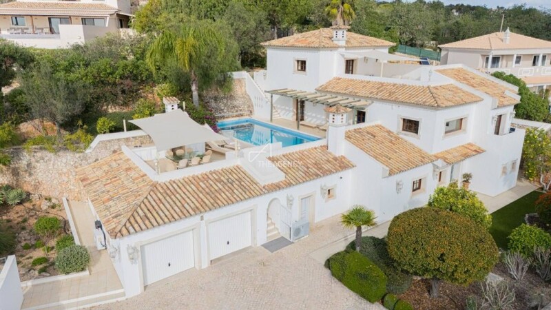 A sophisticated and elegant south-facing villa in Poço Geraldo, Loulé, offering breathtaking views. This exquisite traditional villa features four luxurious bedroom suites and is nestled in the serene hills, providing captivating sea and countryside views. Perfect for those who value privacy and tranquility while remaining close to amenities, the property blends timeless architecture with modern comforts. The villa boasts a spacious open-plan living and dining area, perfect for relaxation and entertaining. On the ground floor, you’ll find two comfortable suites, with an additional suite on the first floor. The master suite, located on the second floor, offers unparalleled views of the picturesque surroundings. Designed for an al fresco lifestyle, the property includes expansive terraces, a lush garden, and a sparkling swimming pool, making it an ideal setting for enjoying the Mediterranean sun or hosting outdoor gatherings. A dedicated BBQ area adds to the villa's charm, while a cozy fireplace creates a warm and inviting atmosphere for evening relaxation. Whether you’re relaxing or entertaining loved ones, this villa promises an exceptional living experience.