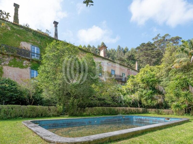Estate dating back to the 18th century, 42 hectares of land and a 2,500 sqm building, in Monserrate, Serra de Sintra. In addition to the Main House (777 sqm), the property also has a Pigeon Coop, a Reception Hall, 18 horse box stalls, a covered area for horse riding and 3 open equestrian fields (2,100, 1,740 and 1,000 sqm). The Main House is decorated with early 20th century tile panels by the famous fresco painter Jose Tiago Basalisa. The land is composed of dense forest with several species such as pines, cork oaks, chestnut trees, oaks, laurels, and acacias, among others. There is a neo-Gothic spring grotto and it is said that Queen Amelia was a regular presence in picnics in these woods. The estate was owned by the Marquis of Pombal - hence its name - and by the Viscount of Monserrate, Sir Francis Cook (who ordered the construction of the Monserrate Palace). The estate comprises a beautiful garden and an outdoor swimming pool. Easy access to Colares, the historic centre of Sintra, Varzea de Sintra, 10 minutes from Praia Grande and Praia das Macas, and 25 minutes from the access to motorways A16 and A5. 45 minutes from Lisbon Airport and city centre. Energy Rating: D.