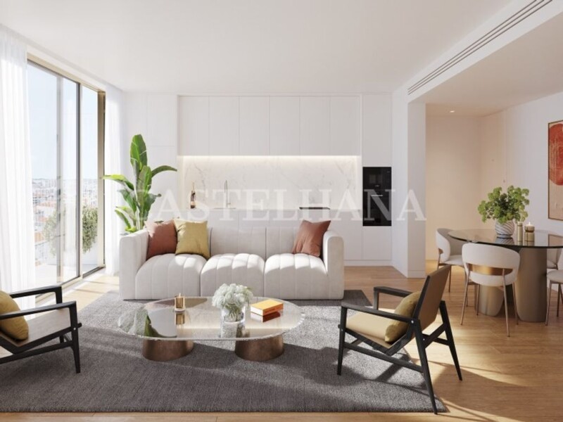 2 bedroom flat with 110 m2, outdoor area of 9 m2, inserted in a new development to be born in the centre of Lisbon with indoor pool, sauna, Turkish bath, private terraces with garden and swimming pool, common garden patio, gym, co-working space, 24-hour concierge and parking. 39 residential units, with typologies ranging from T1 to T4 and T5 and T6 triplex penthouses. Located between Marques de Pombal and Campo Pequeno, this project is located in Avenidas Novas, a vibrant area that combines tradition with modernity, access to wide avenues, imposing buildings and green spaces, ideal for leisure with family or friends. This project stands out for its contemporary architecture, providing a balance between indoor and outdoor spaces, designed to offer comfort, safety and well-being. The common areas, such as the private outdoor patio, reinforce the quality of life of the residents. Sustainability is a priority, with energy efficiency solutions and building practices that minimise environmental impact, ensured by certifications in various areas, such as energy efficiency, environmental performance, responsible use of water and electric mobility. Take advantage of this unique opportunity to live in one of the most sought-after areas of Lisbon. Modernity and comfort in the heart of Lisbon. Contact us now! Castelhana has been a reference name in the Portuguese real estate sector for over 25 years. As a company of the Dils group, we specialise in advising companies, organisations and (institutional) investors on the purchase, sale, lease and development of residential properties. Founded in 1999, Castelhana has built over the years one of the largest and most solid real estate portfolios in Portugal, with more than 600 rehabilitation and new construction projects. In Lisbon, we are based in Chiado, one of the most emblematic and traditional neighbourhoods of the city, in Porto, we are based in Foz do Douro, and in the Algarve region next to the renowned Vilamoura Marina. We are waiting for you. We have a team available to give you the best support in your next real estate investment. Contact us! Energy Rating: A.