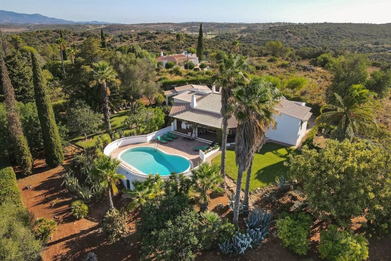 A charming and traditional Algarvian villa, extremely well-kept and preserved, inserted in a land of about 4,000 square meters, where a leafy and mature garden predominates, one that transports us immediately to tropical destinations. When we enter the property, we discover a superb and imposing entrance. The villa is on top of the hill with unobstructed views all around it. Composed of three en-suite bedrooms with plenty of natural light, and a social bathroom, it has an entrance hall that divides the resting area from the kitchen and the elegant social area, composed of a large living room that opens up to an inviting front porch and a family living room with views to a vegetation covered plot, framed with views over the Monchique mountain. On the porch, there is an energy of tranquility. You can only hear the birds and the wind on the leaves of countless fruit, palm and olive trees, all in excellent condition. In front of the porch there is a swimming pool for the whole family. It also has a barbecue area, as well as an almost interior patio with a storage room, or atelier, also with access to the garden. The whole land and garden have wonderful spots to connect with nature and enjoy the mild, all year round, Algarve climate. There are several parking spaces on the side of the entrance to the villa, and also a garage for one car. On one hand, its location is private, surrounded only by trees, nature and unobstructed views; on the other, it is very close to all the main accesses that connect Algarve. Close to the highway access, only about 35 minutes away from Faro's airport and 15 minutes away from the highway to the north of Portugal. It is a few minutes away from Penina Golf Resort and Golf da Boavista, among others, very close to the Autódromo de Portimão, and about 10 or 15 minutes away from some of the most famous and beautiful Algarve beaches. It is also close to Alvor, Ferragudo, Portimão, Lagos, all known for its beaches, culture, lifestyle, gastronomy, allowing for an almost equidistant movement between all these tourist destinations, but also in terms of access to all facilities, such as Hospitals, clinics, pharmacies, restaurantes, commerce, institutional services. Anything you might need, for any occasion.
