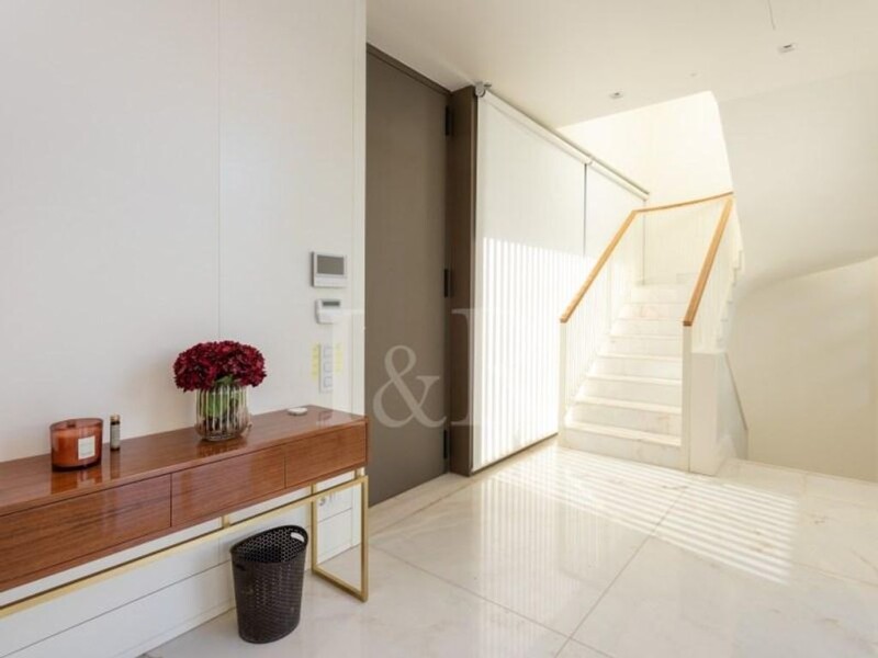 Magnificent 4-storey villa with 335 sqm (including garage and storage room) and 145 sqm of outdoor areas, located in the development Legacy Cascais. The entrance is on the ground floor, which corresponds to the social area, with bathroom and kitchen on one side and dining room and living room on the other, facing the 97 sqm garden with swimming pool in the background. In the middle is the elevator that connects the 4 floors. On the lower floor we find the garage with space for 3 cars, a wine cellar and a storage room. On the upper floors (1st and 2nd floor) we find the bedrooms, all en-suite, and the master suite also has an office and two balconies with 14 sqm each. This townhouse has high quality finishes, equipped kitchen, double height in the dining room and elevator. Legacy Cascais is a new luxury condo in the center of Cascais that includes a 4-star hotel, villas (private Townhouses) and apartments (Premium Residences), resulting from the transformation of the iconic Hotel Cidadela. Amenities include concierge service, concierge, gym, SPA and common garden and pool. Energy Rating: B.