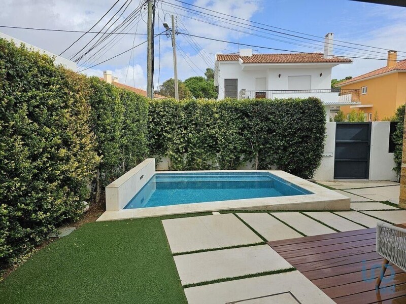 Detached villa on a corner lot, with garden, sauna and swimming pool, in Pampilheira, Cascais. The property was completely renovated in 2021 and has modern concepts and finishings. It is surrounded by large windows, balconies, gardens and terraces, which brings lots of light and a feeling of well-being throughout the house. There are 4 bedrooms, 3 of which are en suite. Ground floor: Hall, office, full bathroom, kitchen integrated into the dining room, living room, laundry room, sauna, barbecue and WC to support the sauna/pool area. 1st floor: master bedroom en suite with balcony, 2nd bedroom en suite with balcony, 3rd bedroom and full bathroom. The incredible outdoor space of this house is perfect for your children to play or to welcome friends in style. Air conditioning (hot/cold) in all rooms, fully equipped kitchen, automatic irrigation system, solar panels and automatic gate. Parking space for 2 cars. 1.5 km from the ocean and 2 km from the historic center of Cascais. #ref: 107902.