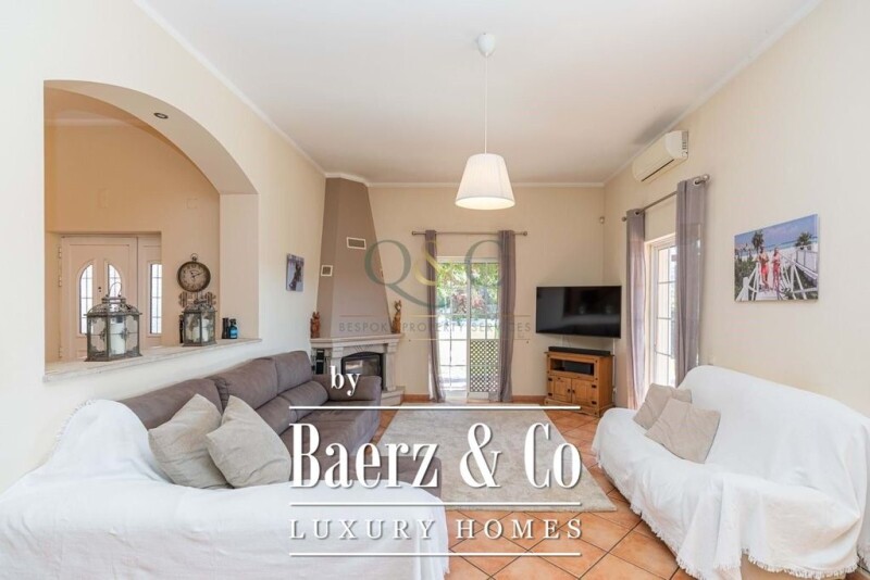 Nestled in the Algarve Countryside on a spacious private plot, this very well presented and maintained villa offers a perfect family home with the perfect blend of tranquility and convenience. A short stroll will take you to a charming café, well regarded restaurant, and a handy mini market, while Loulé is a 10 minute drive and Sao Bras de Alportel is just a five minute drive. Automatic gates open to reveal a long, impressive driveway with abundant parking for multiple cars, complemented by a spacious garage. The moment you step inside this lovely villa youll be greeted by an open-plan entrance hall with soaring high ceilings, seamlessly flowing into the bright and airy living and dining areas. Patio doors lead to a covered terrace, perfectly framed by bougainvillea. The generously sized, separate kitchen opens onto another covered terrace with views of the inviting pool areaideal for enjoying Al Fresco meals under the sun or stars. The ground floor also boasts a good size double bedroom with modern en-suite bathroom and built-in wardrobes. There is also convenient guest WC, ample storage, and direct access to the garage. Ascending the striking feature staircase, youll find a layout designed with privacy in mind. On one side lies the sumptuous master suite, complete with an en-suite bathroom, walk-in wardrobe, and private terrace offering breathtaking countryside vistas with a hint of the sea in the distance. On the opposite wing, two spacious double bedrooms with fitted wardrobes share a stylish, modern bathroom. Comfort is assured year-round with air conditioning for heating and cooling, a log-burning fireplace in the living room and full pre-installation for central heating. The propertys green credentials shine through with 10 LG photovoltaic panels, offering energy efficiency and a smart app for real-time monitoring. High-speed fiber optic internet ensures seamless connectivity. Facing south, the villa is bathed in natural light, and its spacious fully fenced and walled grounds provide terraces, landscaped lawns and a rustic flat field adorned with olive, carob, almond, and fig trees. Surrounded by picturesque walking trails, this idyllic retreat offers the serenity of nature while keeping you close to everything you need. An easy drive to Loulé and São Brás de Alportel and a quick 20-minute journey to Almancil's international schools, pristine beaches, and Faro Airport, this is the perfect sanctuary to call home.