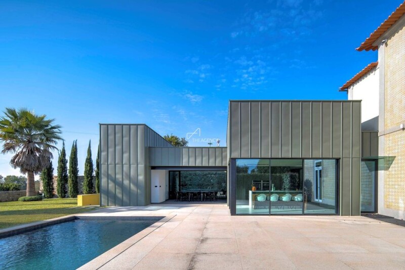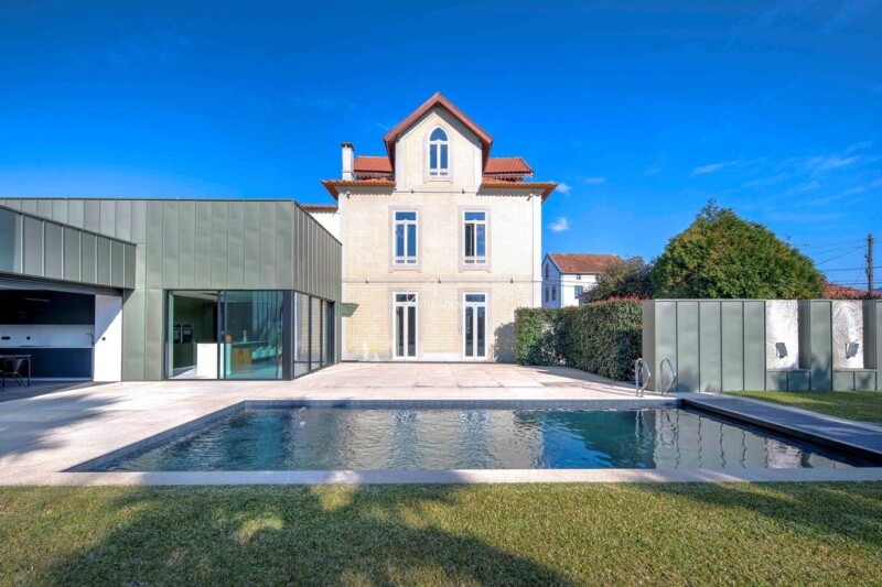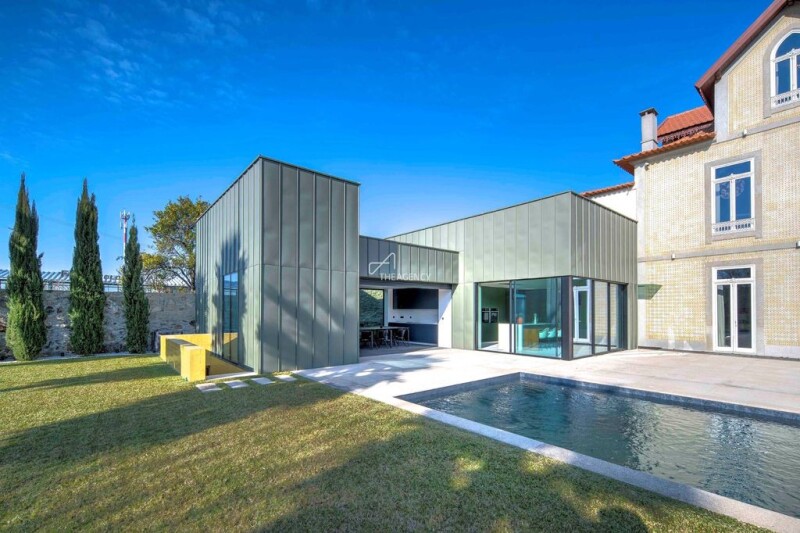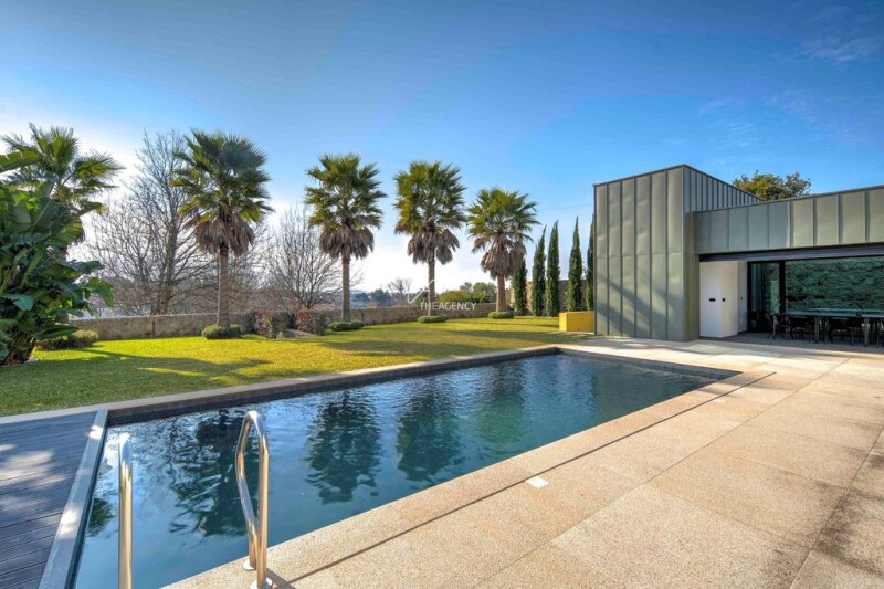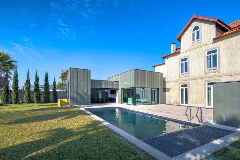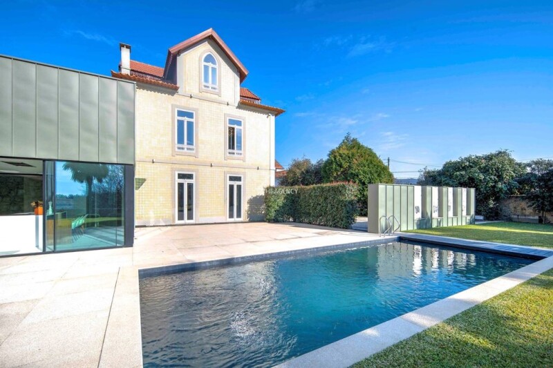 The construction of this palace dates back to the beginning of the 20th century, having been built by the dignified Manuel Pereira Godinho, adjacent to his parents' house. With the designation “Casa do Brasileiro” it was built with the “Brazilian style” architecture due to his family connection to Brazil. In its gardens, “camellias” were planted, originating from the Asian flora and introduced in Portugal in the 19th century, as a symbol of wealth, their existence in private gardens meant wealth, prosperity, and abundance. The residence belonged to the family for several decades, where three of their children were born, one of whom dedicated himself to writing, publishing several books, and signing Manuel Godinho's “Levante”. For more than a century, the mansion underwent interventions, without these removing the brightness of the building and its architectural features. At the end of the second decade of this century, and for 3 years, significant works were introduced in the palace, with its plaster ceilings having been recovered and a new support wing having been introduced, where a kitchen is currently located. It has also been adapted with some contemporary style. The harmony and uniqueness in the recovery of the original plaster ceilings, completely new and lacquered wainscoting with a combination of new materials that meet the most demanding standards of comfort and modernity, a fully equipped kitchen with NEFF appliances, central heating through ducts in the ceilings through the heat pump, home automation, seven toilets, parking for 5 vehicles and class A energy certification, ensure the desired level of comfort and energy efficiency. The palace now has 5 suites, combining the past with the present and maintaining the luxury that it conveyed at the time; with a construction area of 404 sqm and a small basement for technical support, set in a plot of land with an area of 936 sqm where there is a heated swimming pool, garden, and tropical trees. With a recovery project signed by a renowned architect, this palace is a unique and exclusive property. Among its various details, the front entrance panel in solid granite stands out, carved in a single piece measuring 4 meters in front, by the famous sculptor Paulo Neves (whose work is on display at the Serralves Museum). The location in the village of Nogueira do Cravo in Oliveira de Azeméis is excellent, 3 km from the A32 and 35 km south of Porto.