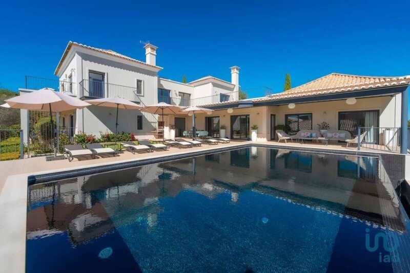 Exceptional villa/ Quinta with infinity pool, sea and nature views. Set in the heart of an estate of just over 3 hectares, this magnificent T6+2 villa spans three levels, plus a guest house, for a total gross floor area of 743m2. From the moment you enter, you'll be seduced by its elegance, softness and clean lines. The hallway of almost 28m2, with its magnificent high-level hallway, leads on one side to 2 generous en-suite bedrooms with large built-in wardrobes, each of which has access to a terrace. On the other, a study and a large fitted kitchen with a central island lead you to a vast living room with a dining-reception area and a lounge area with a fireplace, a sumptuous ceiling and a unique chandelier. These are the details that give this villa its signature refinement. Just over 80m2, bathed in light from sunrise to sunset through the large picture windows... Continue on to the magnificent terrace, with a covered lounge and dining area with plancha, to enjoy all year round. Bordered by the 6 x 10 m saltwater infinity pool, with its unique and elegant black mosaic surround, you can admire a view that extends over the horizon of the ocean, hills and surrounding mountains in total privacy. There is a generous master suite of 47m 2, a dressing room and a bathroom with bath and shower, as well as a spacious suite bedroom. Each has access to a private terrace with uninterrupted views. Level -1 : Two bedrooms, a shower room, a TV lounge and a games area are now dedicated to children. Through a door, you access a large utility room with large cupboards, 2 washing machines and 3 fridges. You will also benefit from a beautiful refrigerated cellar, a large 58 m2 enclosed and secure garage for 2 vehicles, with integrated storage spaces, as well as a technical room for the pool, the water heater... Guest house : Close to the villa, a second house offers over 100 m2 of privacy. Comprising a very large open-plan living area with a fitted kitchen, lounge and dining area, this house also has 2 bedrooms, each with its own en-suite bathroom. Outside: A landscaped garden of various southern species is meticulously maintained and automatically watered. You will also have the immense pleasure of strolling through the very large and magnificent orchard, which contains more than 1,000 citrus fruit trees, as well as numerous mature trees, and of enjoying fruit in all seasons, including oranges, lemons, clementines, mandarins, mangoes, avocados, figs, bananas, lychees, carobs, olives... with uncomparable flavours This magnificent family villa is waiting for its new owners so that you can continue to share great moments with family and friends all year round, in a peaceful setting surrounded by nature and close to all amenities. Its generous volumes, top-quality materials and high standard of finish and equipment offer you all the luxury and comfort of a high standing villa. -15' from Tavira -5' from Sto Estevao -5' from Moncarapacho -12' from Praia do Barril beachhigh sta -12' from Fuzeta beach -25' from Faro airport -15' from Cabanas golf course Technically : - Home automation management of the villa : Video surveillance and alarm Centralised management of electric blind closing Centralised management of the various lighting systems. Leak detection system in wet rooms. Loudspeakers in the ceilings of the house and on the terraces, with a choice of music depending on the space. - Radiant floor heating and central heating - The villa and guest house are equipped with reversible air conditioning systems. - Hot water produced by 3 solar panels. - Independent water supply for the house from a well, with UV filtration. - Septic tank. - The orchard is supplied with water from the dam. - Automatic watering #ref: 125810.