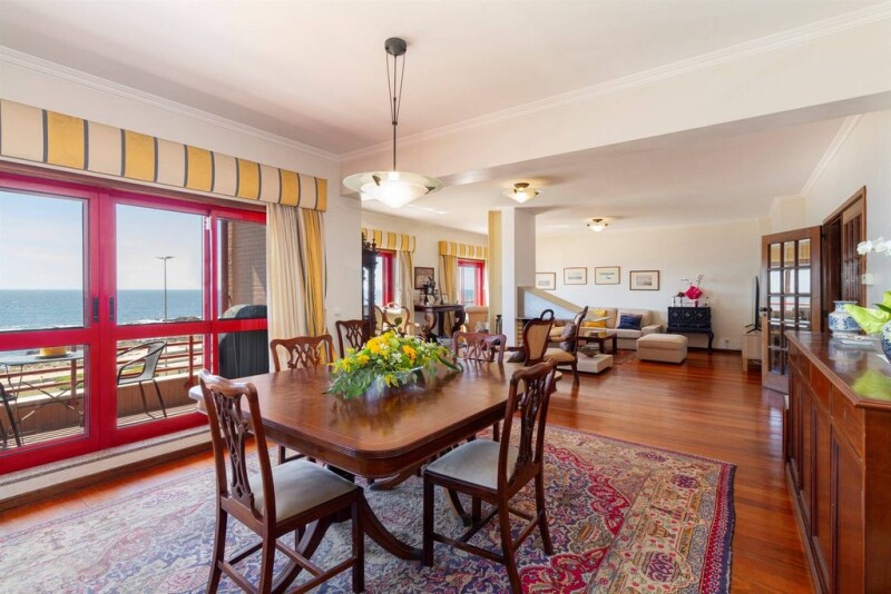 Duplex penthouse located in Leça da Palmeira, consisting of five spacious bedrooms, three of which are elegant suites, with a total of 6 bathrooms. This apartment is set in a prime location, with a spacious terrace of 58 square meters and a balcony of 18 square meters, which allow you to enjoy relaxing moments outdoors and appreciate stunning views of the sea. With a private gross area of 344 square meters and a gross construction area of 442.6 square meters, this apartment offers large and spacious areas. It is equipped with a parking lot for two large cars and a storage room, ensuring maximum convenience. A unique feature of this property is its location in front of the sea, providing stunning views and direct access to the beach. Excellent location, very close to all kinds of services, shops, public transport and the main roads connecting Porto with access to the highway, which is just two minutes away. Inserted in a residential area, supported by a wide offer of restaurants.
