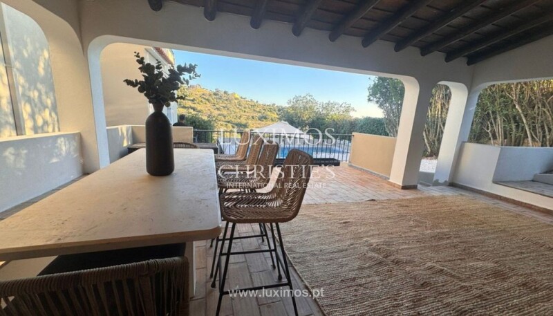 Modern and completely renovated villa, with vast spaces, swimming pool and large plot, offering stunning and tranquil views, where contemporary design blends perfectly with comfort and sophistication, located in the hills, in the heart of the Loulé countryside, in the Algarve. The property is spread over 3 floors. On the first floor, there is an en-suite bedroom with walk-in closet, a fully equipped kitchen and a spacious living room with direct access to the outside. On the second floor, considered the main floor, there is a large living-dining room, a modern , fully-equipped kitchen and 2 en-suite bedrooms. The second floor is dedicated to the master suite, which occupies the entire area, offering an elegant dressing room and a private terrace with panoramic views of the sea and mountains. The exterior of the house has a large garden with barbecue, outdoor kitchen and swimming pool, providing the perfect setting for family leisure time. The large terraces and garden offer breathtaking views of the sea, creating an atmosphere of serenity and sophistication. This property offers functionality and comfort, allowing you to enjoy the scenery and tranquillity. Around 20 minutes from the beaches and just a 5-minute drive from essential services, it is the perfect retreat for those looking for an exclusive lifestyle in the Algarve. CHARACTERISTICS: Plot Area: 4 618 m2 | 49 708 sq ft Useful area: 409 m2 | 4 404 sq ft Deployment Area: 300 m2 | 3 229 sq ft Building Area: 655 m2 | 7 048 sq ft Bedrooms: 4 Bathrooms: 6 Energy efficiency: C FEATURES: Modern villa 4 suites Renovated Large plot Mountain and sea views Swimming pool Garden Terraces Internationally awarded, LUXIMOS Christie's presents more than 1,200 properties for sale in Portugal, offering an excellent service in real estate brokerage. LUXIMOS Christie's is the exclusive affiliate of Christie´s International Real Estate (1350 offices in 46 countries) for the Algarve, Porto and North of Portugal, and provides its services to homeowners who are selling their properties, and to national and international buyers, who wish to buy real estate in Portugal. Our selection includes modern and contemporary properties, near the sea or by theriver, in Foz do Douro, in Porto, Boavista, Matosinhos, Vilamoura, Tavira, Ria Formosa, Lagos, Almancil, Vale do Lobo, Quinta do Lago, near the golf courses or the marina. LIc AMI 9063.