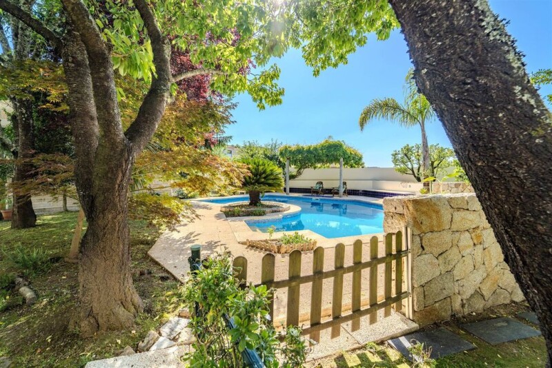 This villa, located in Braga near Rampa da Falperra, presents an excellent opportunity for those looking for a spacious and well-equipped home in a quiet area. With a gross private area of 270 square meters and a gross construction area of 440 square meters, this villa has six bedrooms, including a suite, and three bathrooms. Built in 1993, the property has been assessed in good condition. It offers parking for four cars and a balcony. On the ground floor, the villa comprises a dining room, kitchen, bathroom, living room, and dining area. On the first floor, there is a suite, two additional bedrooms, a bathroom, and an office. The attic provides a large habitable space that can be converted into an extra bedroom, with natural light and a bathroom with pre-installation for a toilet, shower, and sink. The villa boasts excellent construction features, with stone walls with an air gap, cork and brick cladding, totaling a thickness of 55 cm. The frames are aluminum with double glazing, and the flooring is French oak. The roof was redone three years ago and includes aluminum film insulation. Central heating is provided by hot water radiators, dependent on a diesel boiler, and the first floor is equipped with air conditioning in all rooms. Additionally, the property includes a T0 annex with a bathroom and complete kitchen, an outdoor patio, an exterior laundry room, a diesel tank, and a 40-square-meter pool supplied with well water. The garden has about 20 different fruit trees, as well as other trees such as pines, cedars, firs, camellias, and magnolias. This villa is situated in a quiet area, with good spaces and excellent materials, providing many amenities for its future inhabitants.