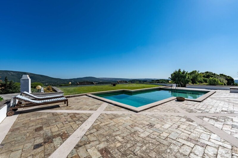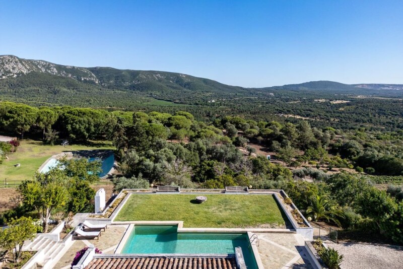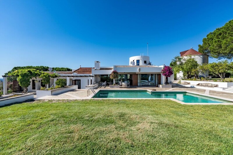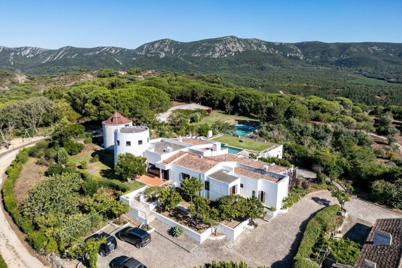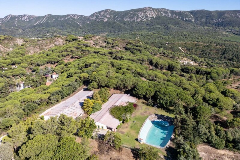 Quinta Moinho da Besuga with 360º panoramic views in the Arrábida Natural Park has a total area of 38,186 m2 and is located in the heart of the Arrábida Natural Park, 25 km from Lisbon, 12 km from Setúbal and less than 10 km from the sea and the various beaches of the Sado estuary. It is fully fenced, has 3 independent accesses, and consists of a main house with 310 m2, another building divided into 3 apartments with 114 m2 for tourist use (2 licenses for Local Accommodation), a 3-storey mill with 36 m2, ready for habitation and 4 warehouses with 2,305 m2. In total there are 12 bedrooms and 10 bathrooms. Excellent for your own home, vacation or investment. The main house, full of light and excellent sun exposure, is situated at the highest point of the property. It was designed in the 1970s as a single-storey house by the well-known architect Conceição e Silva, and includes a two-storey stone mill dating from 1738. The room's four large glazed windows allow you to enjoy a fantastic view to the north and south, even when sitting inside the spacious 150 m2 room. On one side, the river Tagus, Lisbon and its waterfront, on the other, the green beauty of the mountains, Sesimbra Castle, the sea and the Serra de Sintra. Leaving the living room to the south, there is a terrace, a swimming pool and a lawn, all covering 275 m2. The main house has 5 bedrooms, 3 bathrooms, 1 office, a large kitchen, 3 fireplaces and a salamander. Four of these rooms face south and have a direct exit to the pool. The Moinho da Besuga farmhouse is in good condition. Of particular note is the total privacy, silence and natural light of the whole farm, and the privilege of being able to admire the beauty of the sunrise and sunset every day. In the more rural part, there is also a dovecote, kennels and chicken coops of around 180 m2. The farm has two boreholes for collecting (drinking) water, a 30,000-liter water tank and a 200,000-liter cistern. It is connected to the electricity grid, but has a 70 KVA generator. It produces its own wine and has several fruit trees (vines, citrus orchards, olive groves, stone pines, etc.). The farm has a strong aptitude for easily becoming self-sufficient by installing renewable energies such as solar panels or a wind system. In one of the aforementioned 1,000 m2 warehouses, there is a stable with 7 boxes, a horse washing area, a workshop, storage and a cellar.