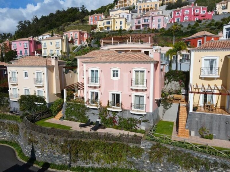 3-bedroom villa with 184 sqm of gross construction area, located in a private condominium with a garden, swimming pool, and sea views in Funchal, Madeira. The design of this villa maximizes the benefits of its elevated position on the hillside. Access is through the back on the upper floor, where the bedrooms are distributed on two levels. The master bedroom and en-suite bathroom are located on the upper floor, near the entrance hall, providing privacy. The other two bedrooms are just a few steps down on an intermediate level, a perfect space for children or guests, with a guest bathroom. All bedrooms feature heated carpeted floors, vaulted ceilings with recessed lighting, and built-in wooden wardrobes. The lower floor includes a storage room and a guest bathroom. The living room has terracotta and moleanos floors, a fireplace, and panoramic views of the Atlantic Ocean and Funchal, contrasting with the adjacent landscaped garden. The bright open-plan kitchen is paved with terracotta tiles and fully equipped with Bosch appliances. The outdoor terrace, covered by a large pergola, is an ideal place for dining. Access to this pergola terrace can be directly from the kitchen or the lounge area. There is an additional terrace adjacent to the pergola and a storage room with hot water boiler at garden level. The garage provides parking space for one car and room for a second car outside. Palheiro Village is a private condominium designed by Michael Brown Associates, featuring traditional architecture that blends seamlessly with the surrounding landscape. It offers a welcoming and secure environment with panoramic views of the ocean, city, and Funchal port. Villa 41 is a cozy family home and is being offered for sale fully furnished and equipped. It also benefits from privileged access to the facilities of Herdade Palheiro, including the heated outdoor pool at Village Forum - just a few steps away, Palheiro Golf's 18-hole course, and Palheiro Spa. The villa is a 10-minute drive from the city center of Funchal and a 15-minute drive from Madeira International Airport. Energy Rating: E.