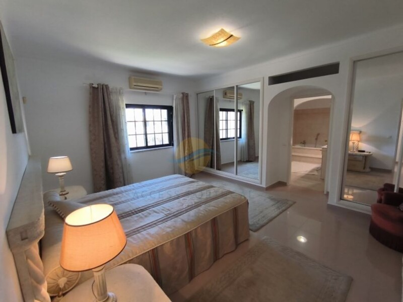 Nestled in one of the most desirable neighborhoods between Lagoa and Carvoeiro, this stunning 5-bedroom villa is set on a generous 1500 m² plot. Built with exceptional quality materials, the house has a built-in central vacuum system, large double-glazed windows, and central heating and air conditioning ensuring comfort and efficiency. Upon entering the grand entrance hall you are immediately enveloped by the sophisticated style that defines the entire residence.The bright living room is equipped with a fireplace, and the adjoining elegant dining room offers direct access to a spacious balcony and the heated swimming pool. The ground floor also features a large, fully equipped kitchen with connecting pantry and laundry room; and a luxurious bedroom with an in-suite bathroom featuring an oversized 'hot tub' bathtub. One additional bedroom is also located on the ground floor which can easily be converted for use as an office if needed. Moving up to the first floor, there are three additional bedrooms as well as a bathroom with a spa bath. This floor also has a large balcony with outside access via stairs to the pool area. One of the bedrooms has exclusive access to a first floor terrace, as well as access to a second floor terrace at the highest point of the house. This spectacular second floor terrace provides residents and guests with an unparalleled 360 degree panoramic view. The exterior of the property is equally impressive and well maintained. The villa is equipped with a one car garage and an additional covered outdoor parking space for two more cars. Located less than 10 minutes from the Nobel International School and five minutes from several golf courses and beaches, this villa is close to all necessary amenities, such as supermarkets, restaurants and services. Furthermore, it is just 45 minutes from Faro International Airport, making it an excellent investment choice. Carvoeiro is the town in the municipality of Lagoa that occupies the part of the coastline where the best attractions are to be found. Its entire 15-kilometer coastline is made up of impressive caves and holes in the rocks that are invaded by the sea, the most striking and famous of which are Praia do Carvoeiro, Praia da Marinha and the spectacular Gruta de Benagil Energy Rating: C.