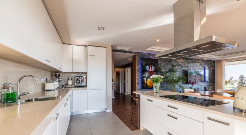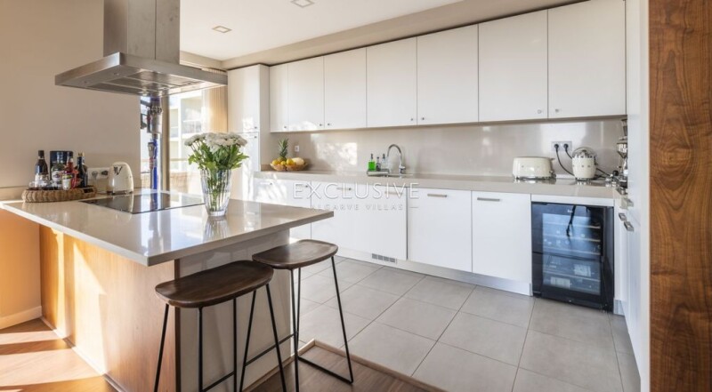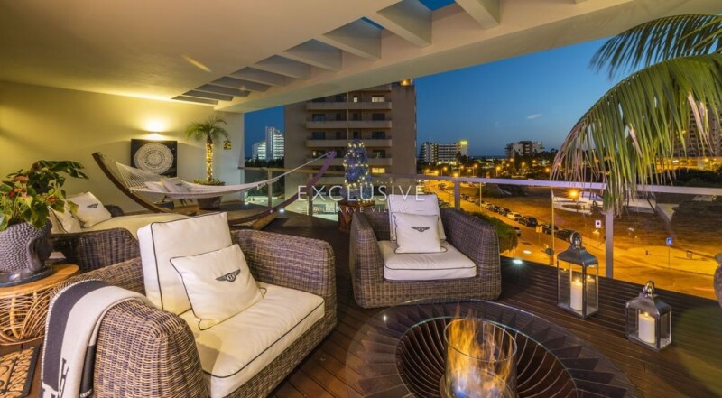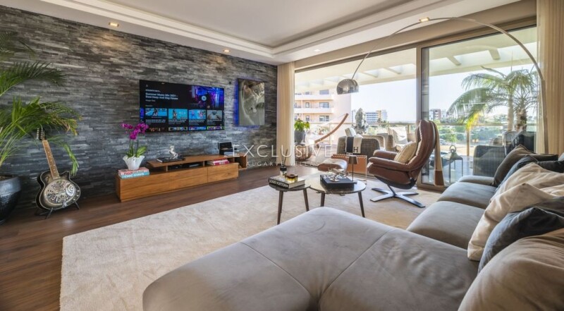 This luxury 3 bedroom apartment occupies the entire floor of the building and is truly a unique find in the heart of Praia da Rocha, and yet calmly set in a peaceful gardened complex. Inserted in a closed condominium within walking distance to the beach, this property offers all the confort and luxury apartment, and upgrades found in a luxury villa. The property is on gated community offering a security entrance, elevator garage, guest parking, two swimming pools, landscaped ample gardens and sauna. This apartment has been custom designed and as it occupies the entire top, it benefits from extended terraces and sea views from all rooms. The apartment is composed of an entrance hall leading to the open concept living room directing facing the ocean, which opens out into a large terrace lounge. The kitchen, fully equipped with brand appliances, it has a separate terrace with a Jacuzzi and also sea views. The master bedroom has a separate balcony, also with sea views, and an en-suite bathroom with double sinks and a walk-in closet. The two additional bedrooms share a double-entrance bathroom and also have sea views. This property has been fully upgraded in all its finishes, including electric shutters, wooden floors throughout and professional décor. It is equipped with central air conditioning and heating and alarm system. The apartment has two designated garages, which have been customized to the same standards as the apartment interior, suitable for luxury vehicles. This property is ideal for a luxury all year round residence, or a luxury holiday home. It is located within walking distance to the beach, only a 10 minute drive from the largest marina in the Algarve and its golf courses, and just 45 minutes from the Faro Airport. The public and private hospitals are also within a 10 minute drive. Praia da Rocha is one of the most iconic destinations in the Algarve, where you can enjoy water sports, nightlife, restaurants as well as some of the most beautiful beaches in the Algarve.
