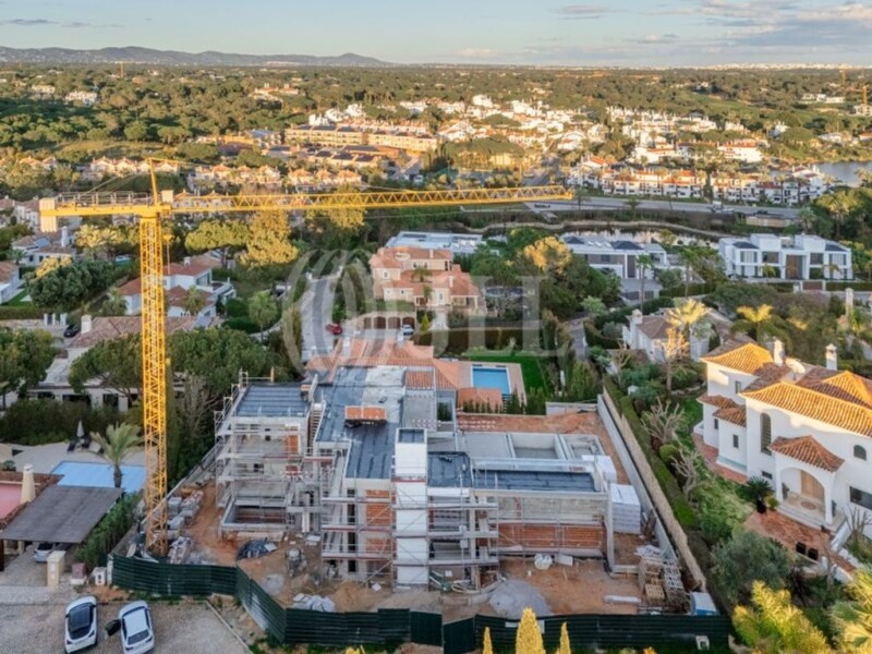 4+1 bedroom villa under construction, with 768 sq m of gross construction area, swimming pool and garden, set on a 1,220 sq m plot, located in Encosta do Lago, Quinta do Lago, Algarve. The villa, with modern architecture and contemporary design, is spread over four floors. The ground floor features a spacious social area comprising living room, dining room and modern Italian kitchen, fully equipped with Miele appliances. Minimalist floor-to-ceiling windows offer panoramic views. On the first floor, four en-suite bedrooms with built-in wardrobes. Roof terrace with hot tub, bar and lounge. The basement has a bedroom, games room, gym, sauna and garage for two cars. In the outdoor area, infinity pool, sunken lounge with fireplace, barbecue area and dining area. Notable features include superior quality materials and finishes, providing perfect harmony between indoor and outdoor spaces, as well as stunning views of Quinta do Lago lake. Construction completion in October 2025. High-quality finishes include Marazzi porcelain flooring, Villeroy and Bosh sanitary ware, GESSI taps, underfloor heating, built-in air conditioning and mechanical ventilation system. Located just 300 metres from 'The Campus', which offers tennis and padel club, academy, football pitch, shop and gym. 500 metres from the Shack Bar on Quinta do Lago lake and 550 metres from the wooden boardwalk to Quinta do Lago or Ancao beaches. Energy Rating: A+.