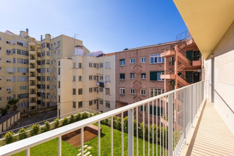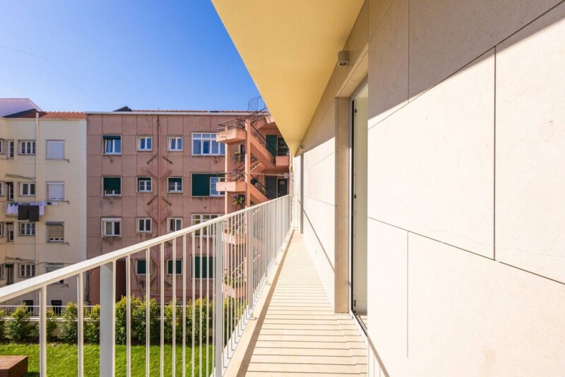Excellent 2 bedroom apartment, with 122 m2, in the heart of Av. de Madrid, a stone's throw from Areeiro, Avenida João XXI and Av. de Roma. Inserted on Floor 3 of a building of excellent recent construction by the renowned Arquitectos Saraiva e Associados, with elevators, this elegant apartment with a modern and simple line was built with excellent and top quality materials! To the left of the entrance, there is an excellent rectangular Lounge, facing west, with 3 small balconies! Also in the apartment's entrance hall is the guest bathroom. Opposite the living room is the fully-equipped KITCHEN with top-of-the-range BOSCH appliances. The kitchen as well as the BEDROOM and WCs face east. These 2 rooms have an excellent view of the condominium's private garden, a 250 m2 green area, perfect for children to play or simply relax outdoors. The private area is then made up of the aforementioned bedroom, an excellent large bathroom with a shower tray and hanging dishes and a suite with a small balcony. The suite has a large built-in closet with plenty of storage and its bathroom also has a shower tray. Multi-split system air conditioning in all rooms. Electric shutters and blackouts. Frames and double glazing with acoustic and thermal insulation. All the flooring in the common areas is oak wood. Apartment with east-west sun exposure. Energy rating A+. The apartment also has 1 parking space and 1 storage room. Area with all types of transport available (buses, Metro and trains - Roma-Areeiro station) and Lisbon International Airport a 5-minute drive away. Av. de Madrid is one of Lisbon's renowned new avenues, where generations of families continue to choose to live, given the breadth of urban space, quality shops and services found in the area and its central location. Living in this condominium, on Av. de Madrid, is synonymous with refinement, comfort and quality of life, in a central yet very quiet area!.