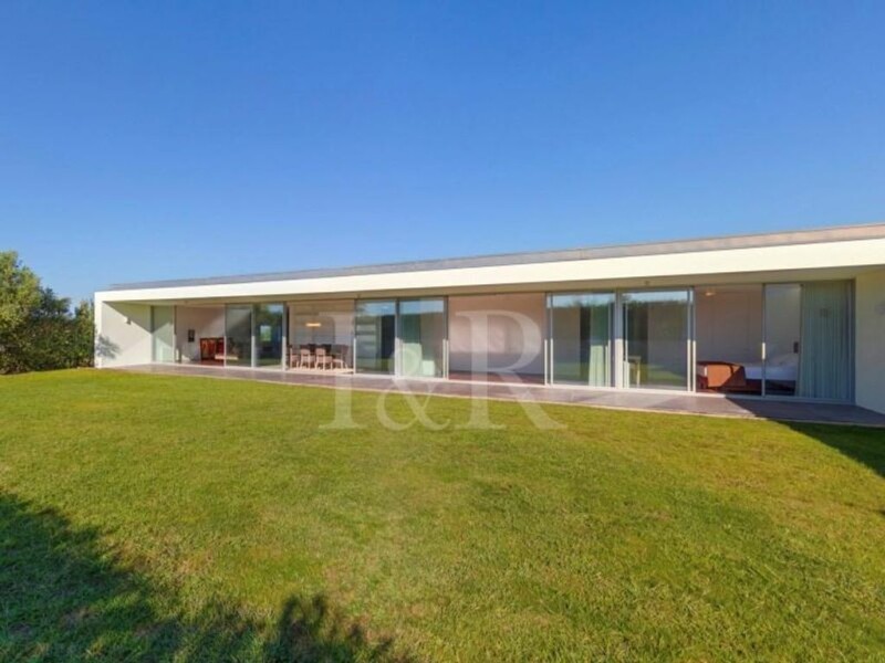 4-bedroom villa for sale in Obidos, inserted in Bom Sucesso Resort, located 15 minutes from the historic medieval town and about an hour from Lisbon. With unobstructed views and plenty of privacy, the villa designed by the architect Souto Moura develops on a single floor and consists of living room with fireplace, dining room, fully equipped kitchen, social bathroom, four bedrooms, two with closet and served by a full bathroom and two en suite with walk-in closet. The villa also has a pantry, laundry room, and an engine room. In addition to an interior patio with garden, the villa has two more exterior covered patios, along two facades, and a 73m2 lawned garden. With large glass shutters in all rooms that provide plenty of light and allow you to be in permanent contact with the garden and all the surroundings, the villa also has a nice pool located on an elevated area of the land and allows a wide view of the horizon. Located in Vau, near Lagoa de Obidos, Bom Sucesso Resort is a unique project, with 160 hectares, and that stands out for its 18-hole golf course, a 5-star hotel with SPA, outdoor swimming pool, gym, tennis, paddle tennis and soccer courts, heliport, and also a Clubhouse with restaurant and bar, laundry and grocery store. With 24 hour security, the Resort is 5 minutes from the Rei Cortico and Bom Sucesso beaches, 15 minutes from the charming town of Obidos, of Roman origin and surrounded by strong walls, and about an hour from Lisbon. Energy Rating: C.