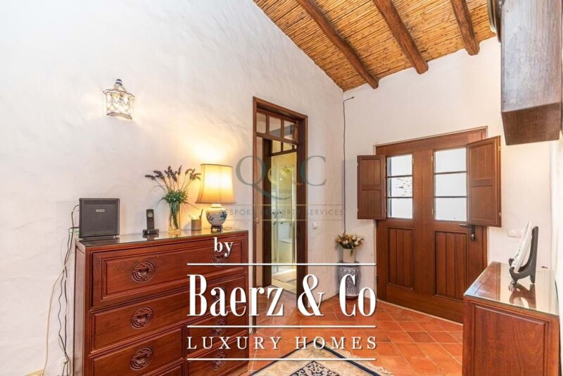 A charming detached and spacious 3 double bedroom property built in the early 1990´s in the style of a traditional Quinta enjoying an elevated position with sweeping views of the surrounding Algarve Countryside and enjoying close proximity to the bustling town of Sao Bras de Alportel. Built in the early 1990s in the style of a traditional Portuguese Quinta this charming and spacious south-facing property set in the beautiful Algarve countryside just outside the bustling town of Sao Bras de Alportel, enjoys an elevated position with sweeping views of the valley surrounding the property. The Quinta benefits from many original features: traditional Santa Catarina tiled floors throughout the interior and to all the terracing, high ceilings with cane and beam, a large south-facing veranda, and sympathetic planting schemes around the house which include lovely large olive pots. A spacious terrace around the swimming pool with an outside kitchen and BBQ area offers a perfect area for entertaining. The Algarve Coast and Faro International Airport are within a half an hour's drive. Arrive through the gates and the calcada paved driveway leads down to an area with ample parking outside the house and the double garage. Follow the terrace around the house and enter through the front door you will find the hallway and off the hallway are the three double bedrooms, one of which with en-suite shower room and two of which benefit from double doors out to the veranda. In addition, a family shower room with a linen cupboard and guest cloakroom are located next to the bedrooms. Turn down the hallway in the other direction, leading to the spacious L-shaped sitting room/dining room with two sets of double doors out to the terracing and a wood burner. From the dining area walk into the fully fitted kitchen with granite worktops and splash back and a door to the outside. The south-facing and large veranda offers a wonderful place to sit and relax and enjoy the views: a perfect place for alfresco dining and to watch the sun go down. Follow the terracing around the house and steps lead down to the spacious swimming pool terrace benefiting from an outside covered kitchen area with BBQ, a food preparation area with sink, water and electric sockets and lights. The pool which is 10 x 5 metres at its maximum point benefits from an independent solar run pump with mains backup. Below the swimming pool terrace is the pump room for the pool and additional storage. The further benefit of the Quinta are rooms on the same level as the swimming pool terrace. A large laundry room and two further rooms, one of which benefits from double doors to the terrace and another with a side door to the outside. There is also a shower room. This whole area, with the benefit of refurbishment, offers many possible options to further utilise this space. The double garage houses solar panels and a storage battery that provide some power to the house. There is a large storage room and a large log store to the back of the garage area. Three outhouses provide further storage, including gas bottles for the kitchen, and plant including the pressure pump, water softener and timer controls for an automatic garden irrigation system. The Quinta's main level benefits from air conditioning throughout, radiators throughout that run off an ionising electric boiler, good storage throughout, double glazing, traditional shutters and mosquito blinds. The property has mains water, borehole, cistern and fosa. A main solar bank is set up that feeds power directly back to EDP and generates an income of up to 160 per month This property is presented by Quintas and Casas, voted the best boutique real estate agency in Portugal in 2024.