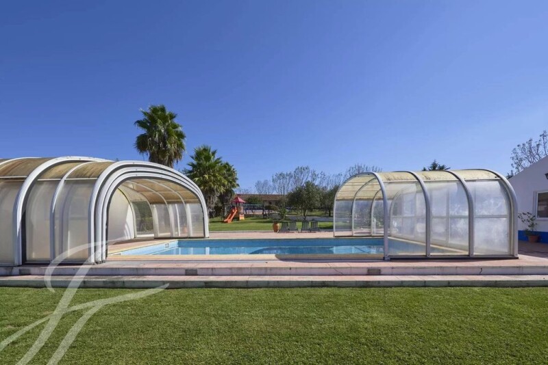 Exceptional self sustainable farm of 2,5 ha in the historical area of Évora, Montemor, São Cristovão. This property is designed to enjoy the perfect balance between private and guest areas. Offering a main villa, 350 sqm, 1 suite and 3 bedrooms, 2 bathrooms and office area with a large kitchen-living-dining area, a high wooden magnificent ceiling creating many cosy areas to enjoy the huge fire place. A mezzanine comforts a sleeping and playing place for dozens of children. When coming into the main villa you feel at home right away. The guest area is located at the back of the property consisting of large and comfortable 4 suites (2 with separate living rooms) sharing a kitchen-dining-living area with private garden and an outside kitchen-BBQ area. In between the private and guest areas you find the children playground, swimming pool and pool house (shower and 2 toilets), additional outside kitchen-BBQ area, separate large pantry-laundry area and a dog shelter. This 2.5ha farm has additional features such as fruit, olive trees and agriculture areas, a tennis court, garage for 2 car, agriculture shed and high speed internet. Fully self-sustainable in terms of electricity (solar panels) and water (bore hole). This, only within a 1 hour drive from Lisbon´s airport and close to the historical areas of Évora and Montemor. Don´t miss this unusual and high quality farm when looking for the ideal bed and breakfast environment.