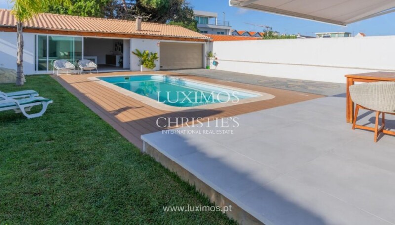 Furnished three-bedroom villa with pool and pool house , for sale in the most exclusive and quiet area of Praia da Barra, with unobstructed views of the Ria de Aveiro. This is a recently renovated single-storey house with high-quality finishes that include underfloor heating, thermal protection on the exterior walls, floors and ceilings and a controlled environment. The kitchen is also fully equipped with Bosch appliances and the three bedrooms have built-in closets. At the rear of the plot is the pool house with a kitchen, barbecue and wood-burning oven, as well as a pool table, plus a gym, a sauna for 4 people and a garage - which includes an electric charger - for two cars. The pool is heated and this villa has a dream location, with road access just a few minutes away; 10 minutes from Aveiro and 60 minutes from Porto. CHARACTERISTICS: Plot Area: 680 m2 | 7 319 sq ft Deployment Area: 209 m2 | 2 250 sq ft Building Area: 209 m2 | 2 250 sq ft Bedrooms: 3 Bathrooms: 2 Garage: 2 Energy efficiency: A Internationally awarded, LUXIMOS Christie's presents more than 1,200 properties for sale in Portugal, offering an excellent service in real estate brokerage. LUXIMOS Christie's is the exclusive affiliate of Christie´s International Real Estate (1350 offices in 46 countries) for the Algarve, Porto and North of Portugal, and provides its services to homeowners who are selling their properties, and to national and international buyers, who wish to buy real estate in Portugal. Our selection includes modern and contemporary properties, near the sea or by theriver, in Foz do Douro, in Porto, Boavista, Matosinhos, Vilamoura, Tavira, Ria Formosa, Lagos, Almancil, Vale do Lobo, Quinta do Lago, near the golf courses or the marina. LIc AMI 9063.