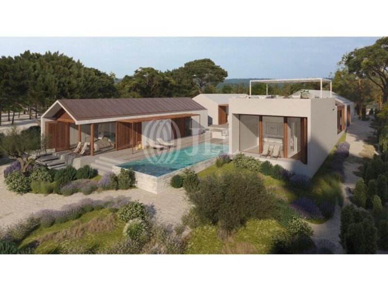 6-bedroom villa, 400 sqm (gross construction area), of which 65 sqm in a garage, with swimming pool, garden and terrace with unobstructed view overlooking the fields, set on a 1,116.40 sqm plot of land, located in the La Reserve gated community, in Lagoa Formosa, Carvalhal. The contemporary architecture villa fully fits into the region's traditional style. It spreads on the ground floor and comprises a large living and dining room with an American kitchen in a total of 111.98 sqm in open-plan, a guest bathroom, a home office and five suites, two of which with closet, and a master suite with a 40.72 sqm balcony. Outside, there will be a leisure area around the swimming pool, a firepit, bathroom supporting the outdoor area and storage area. The garden will essentially comprise native plants. Villa sold turnkey. Licensing costs for the design and construction of the villa to be borne by the seller, with a building license already valid. The La Reserve development comprises 24 individual Urban Plots for development of Premium Villas with personalised architecture, 82 Village Houses (Village La Reserve) with 3 to 5 bedrooms, and 56 tourist apartments (Aparthotel) with 3 bedrooms. Its prime location endows great privacy and unobstructed view overlooking the countryside, as well as a panoramic view towards the sunset. The access to the Carvalhal and Pego beaches can be made by bicycle from the villa via the existing cycle path. Located just 100 metres from the main shopping and service establishments, namely pastry shops, pharmacy, banks, stationery shops, several other shops, and decoration shops. Its proximity to Hotel Quinta da Comporta also stands out, as well as to the region's famous restaurants such as Sal, Sublime and JNcQUOI Beach Club. Within a 5-minute driving distance from Carvalhal and Pego beaches, the new Comporta Dunes golf course and 15 minutes from the centre of Comporta. Only one hour from Lisbon and has easy access to the airport. Energy Rating: Exempt.